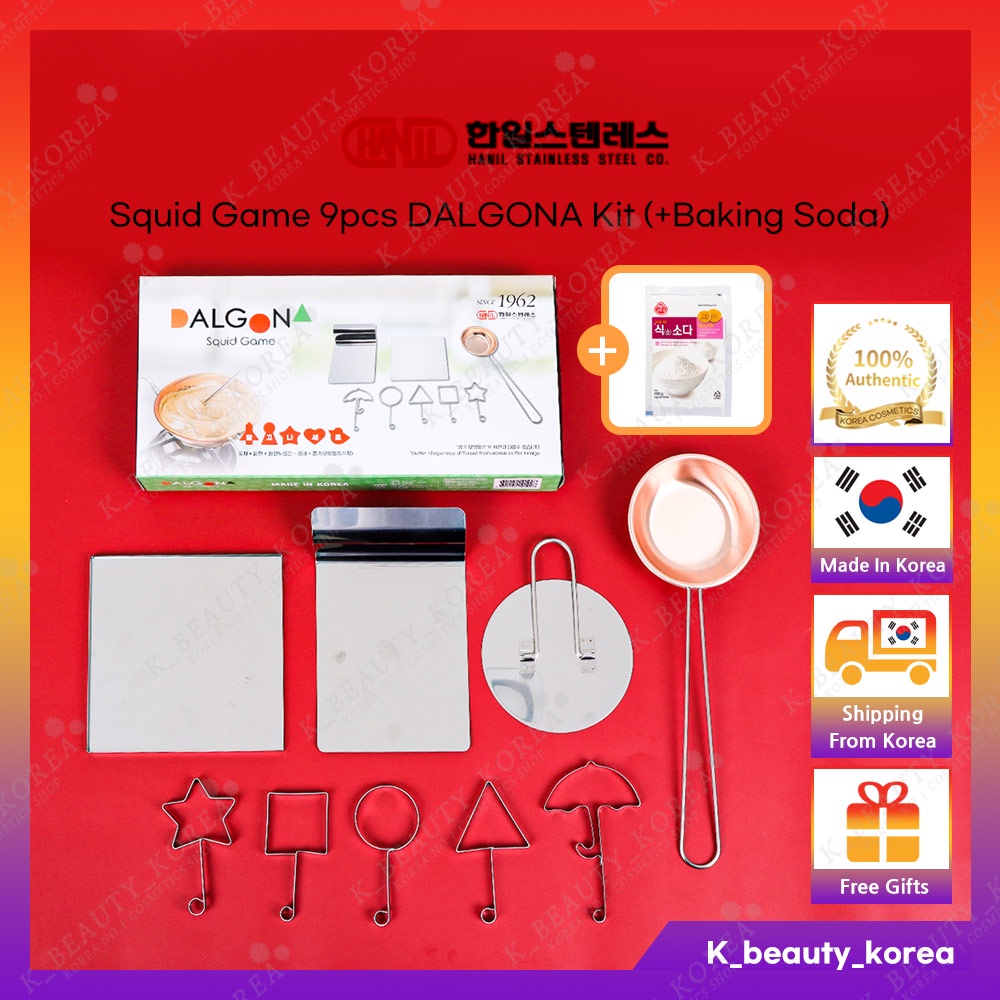 [Squid Game] 9pcs DALGONA Kit (+Baking Soda) / Sugar Candy Making tools Honeycomb Ppopgi Set [Made in Korea]