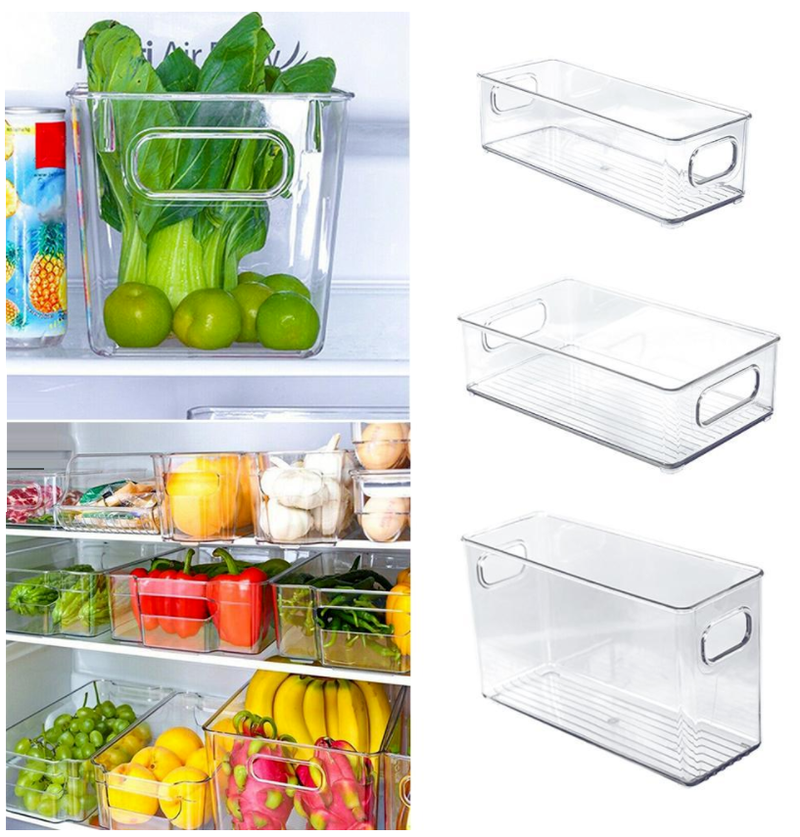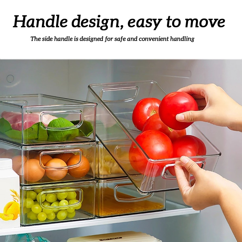 [Stock] Drawer Type Food Storage Box,Clear Refrigerator Organizer Stackable Boxes, Clear Plastic Handle Pantry Food Storage