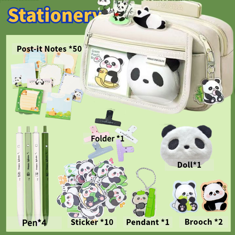 "Stylish Panda-Themed Transparent Pencil Case - Large Capacity Waterproof Stationery Organizer, Minimalist Aesthetic School Supplies Set for Students (Multi-Functional Cartoon Stor
