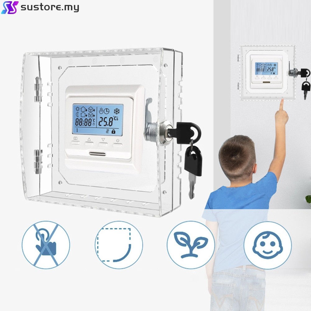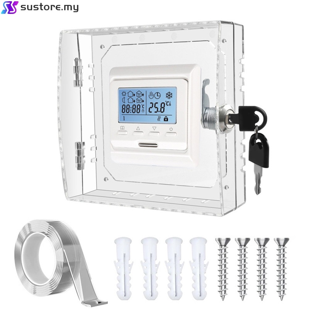 [Super] Acrylic Thermostat Guard Lockable Ac Lock Box Cover Thermostat on Wall 2 Keys [Ready Stock]