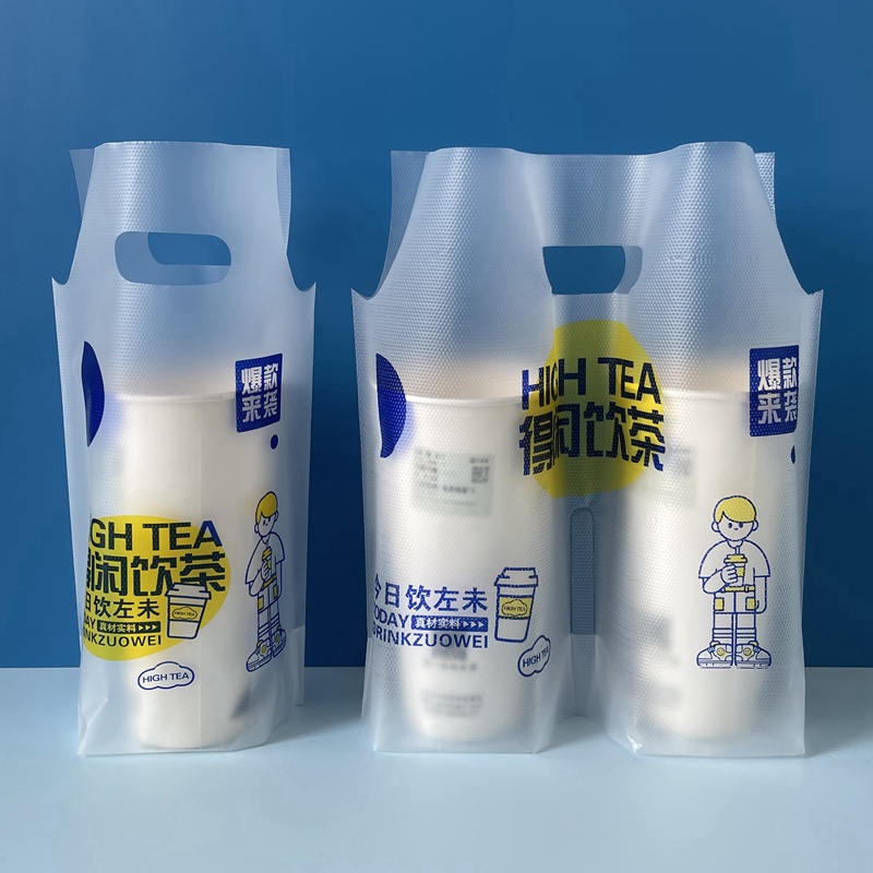[Support Customization] Milk Tea Packing Bag Thickened Influencer Cartoon Disposable Bag 500ml-700ml Cup Universal Milk Tea Bag Packing Bag Single Cup Bag Double Cup Bag Takeaway Beverage Bag Milk Tea Bag Beverage Bag