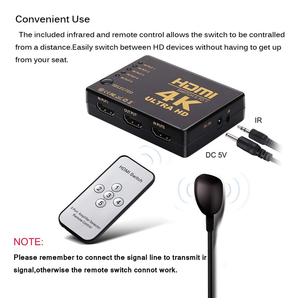 [Support PS4/PS5] 3 Ports 4K HDMl Switch Selector Switcher Splitter Hub with Remote Control 3in1