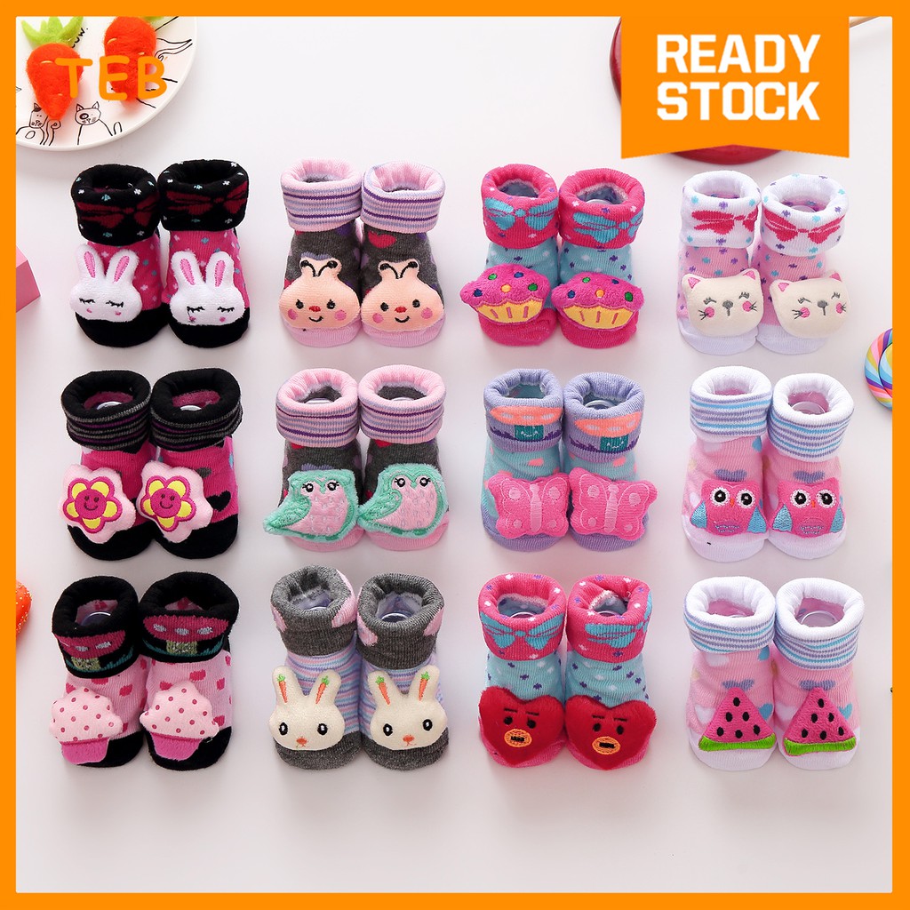 [TEB] 1 Pairs Plush Toy Boys & Girls Baby Socks Soft Cotton Cute 3D Cartoon Breathable Kids Socks [ Random Design ]