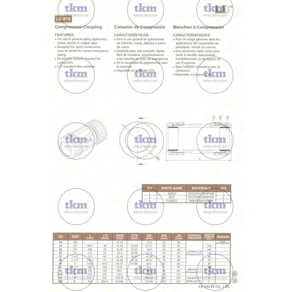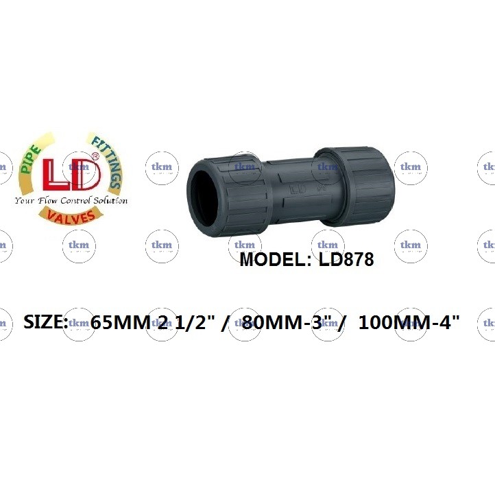 [TKM] BRAND LD PVC COMPRESSION COUPLING [LD878] 65MM 80MM 100MM 2 1/2" 3" 4" Pipe (GI / Stainless Steel / PVC)