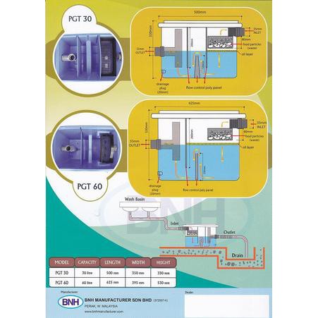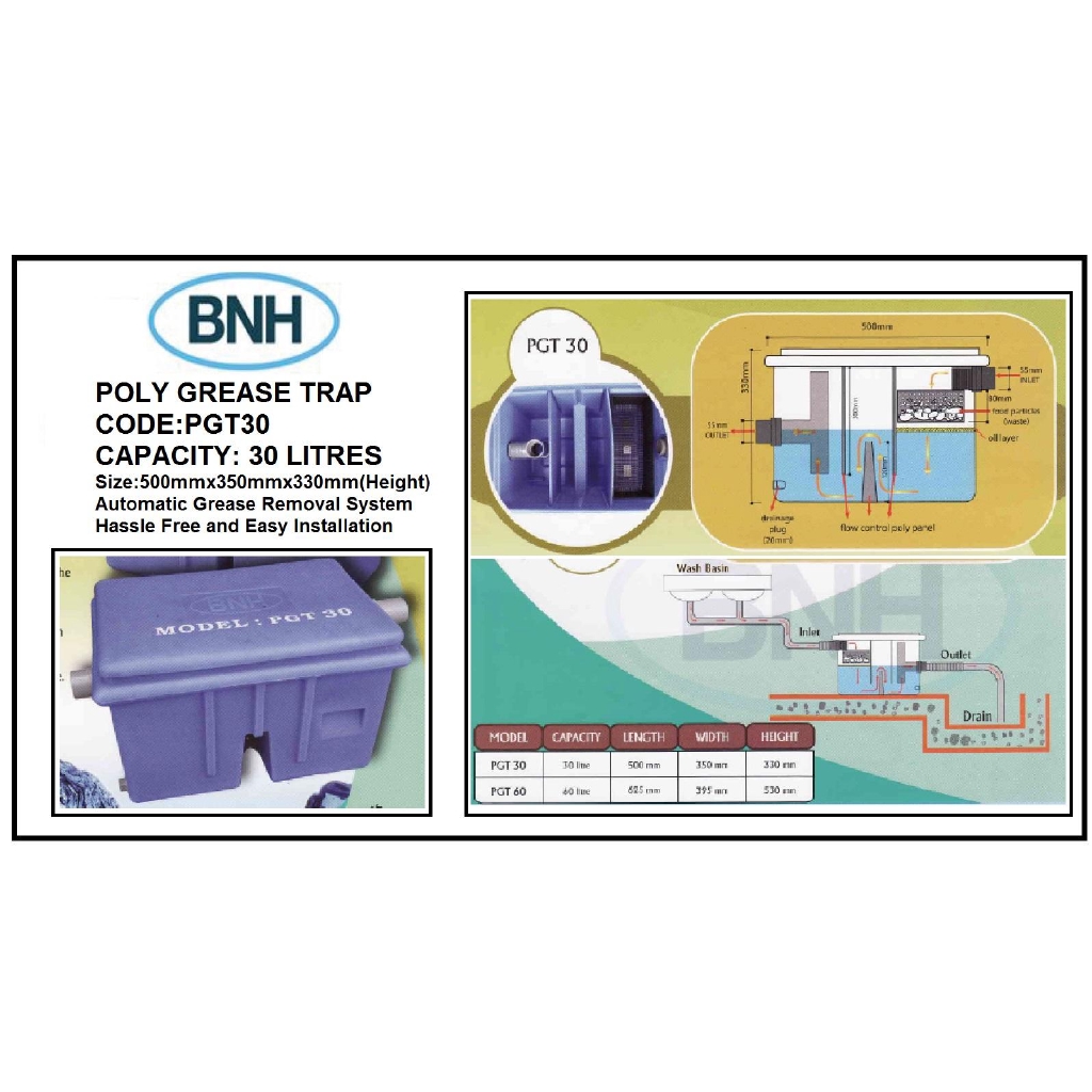 [TKM] PGT30 30 LITRES BNH POLY HDPE GREASE TRAP (PERANGKAP MINYAK) OIL TRAP / TONG PENAPIS
