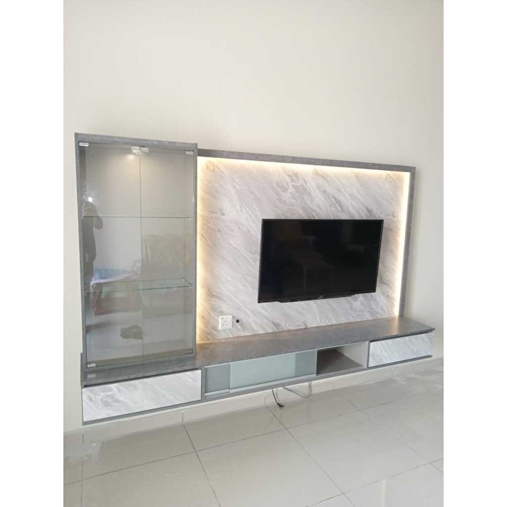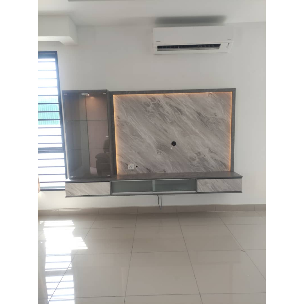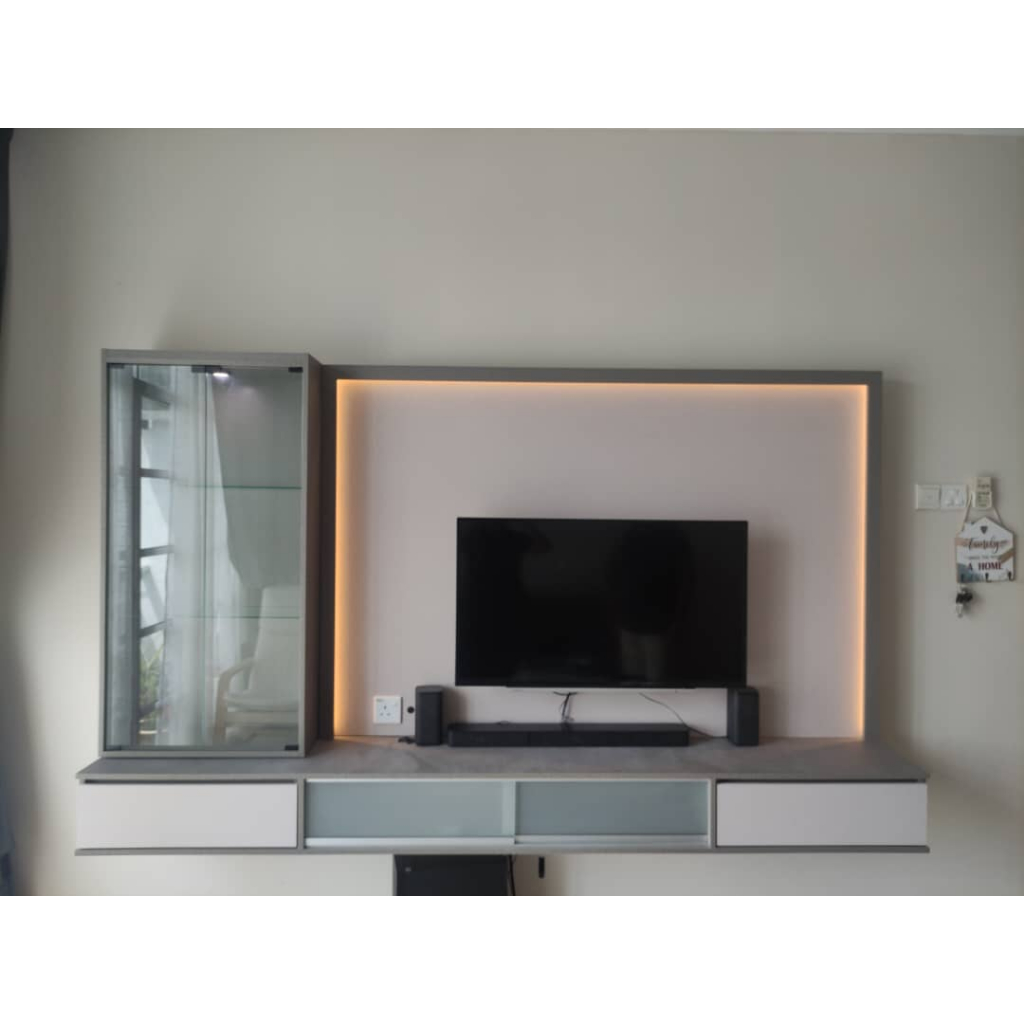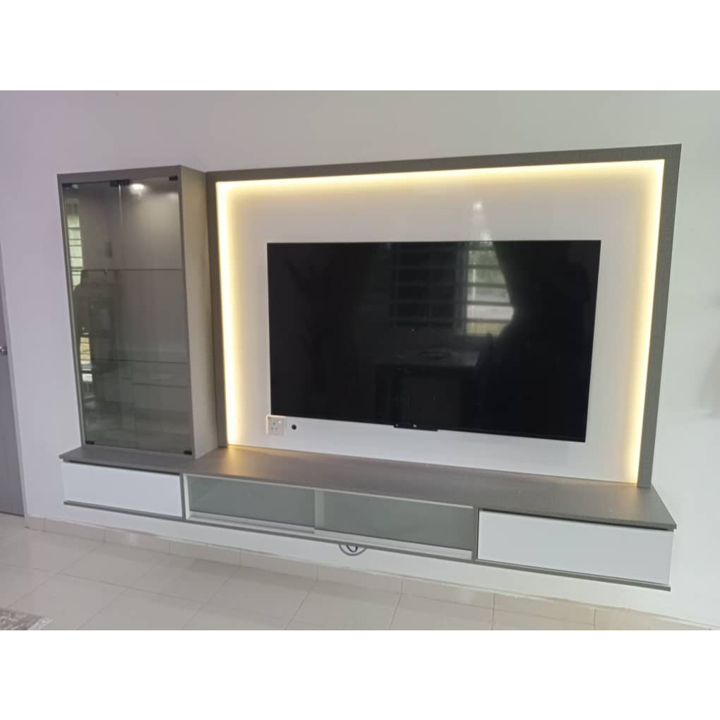 [TSB-TV45]8FT TV Cabinet with LED Light & Solid Wall/8 Kaki Kabinet TV Lampu LED/Almari TV Moden