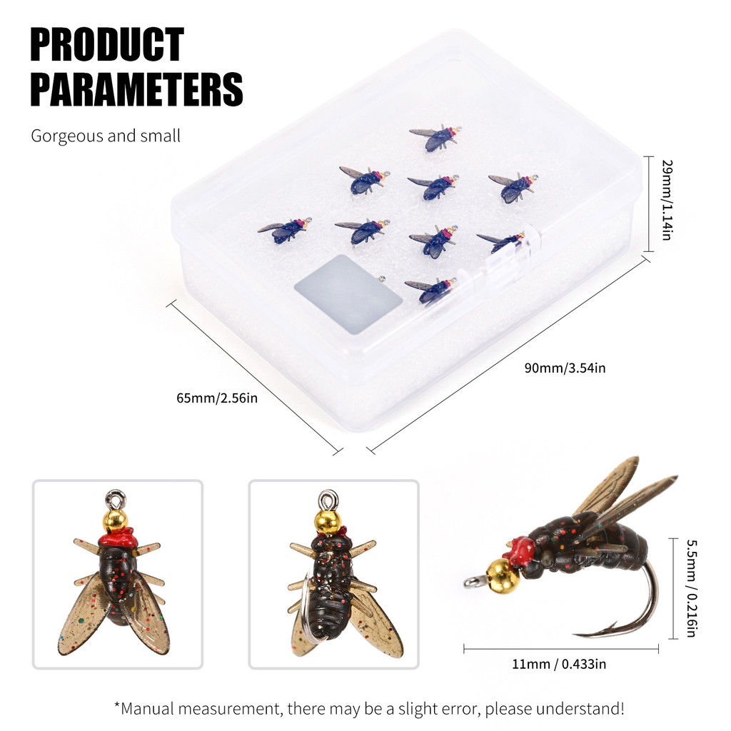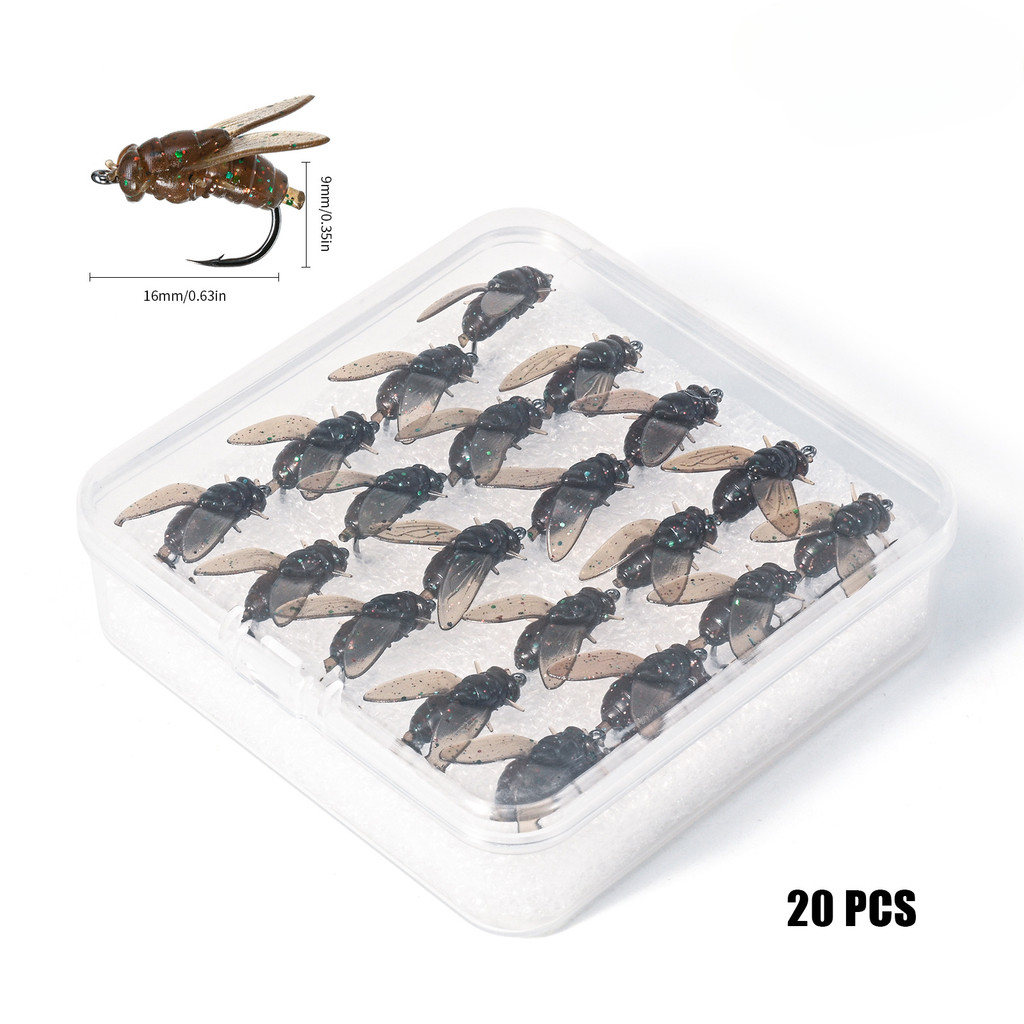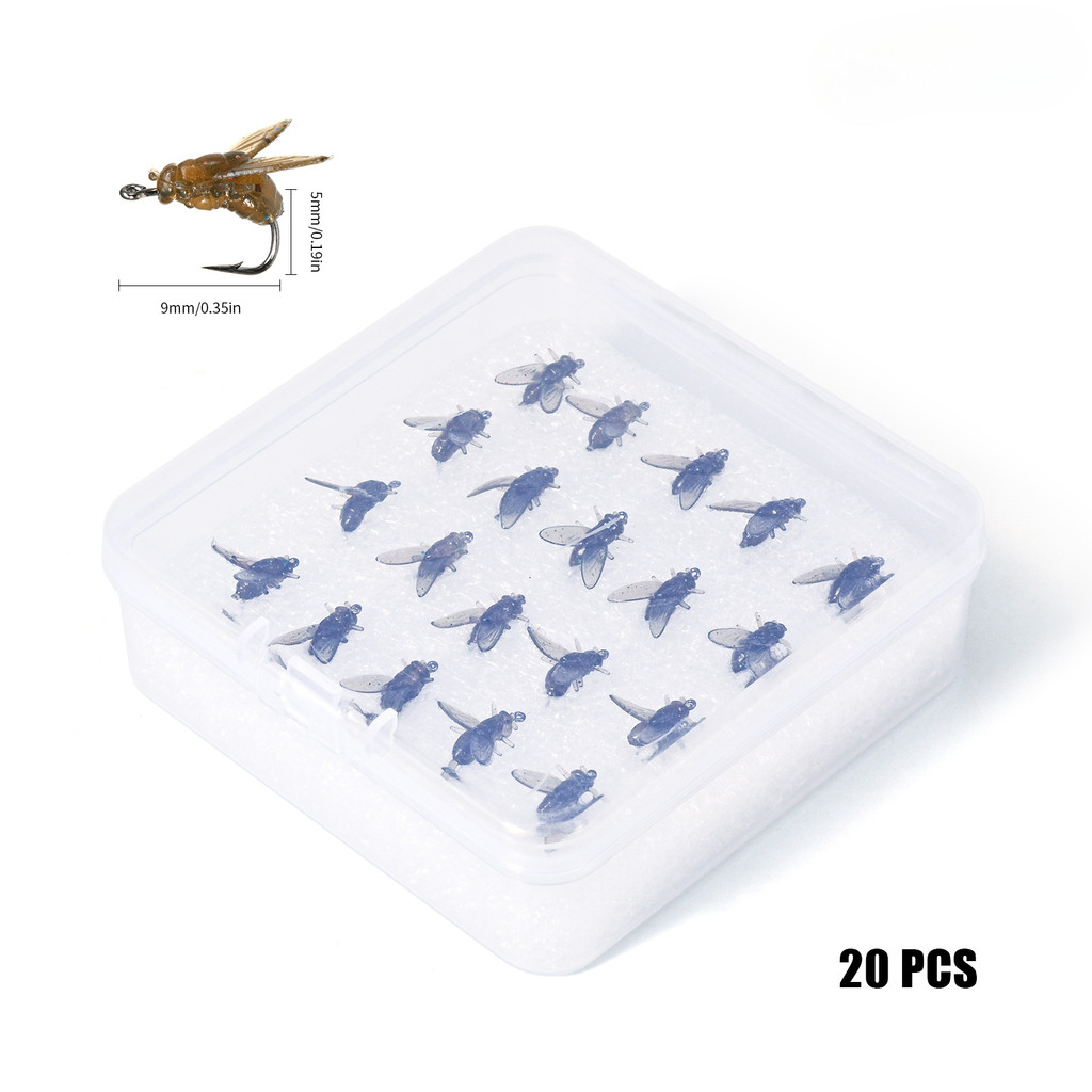 [TTFF] Flying Fishing Lure Bionic Flies 20pcs/Box Gift Packing Silicone Lure 9/12.5/16mm Flying Insect Lure Fishing Gear Soft Bait Language Sentence Ready Stock Wholesale