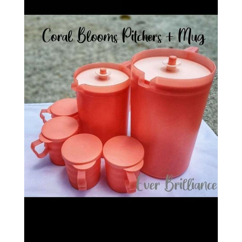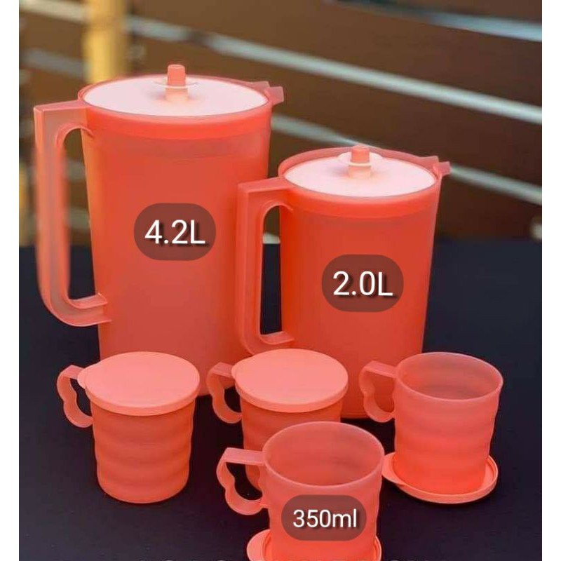 [TUPPERWARE] Coral Blooms Giant Pitcher 4.2L 2L Mugs and Seals 350ml Jug Jag air