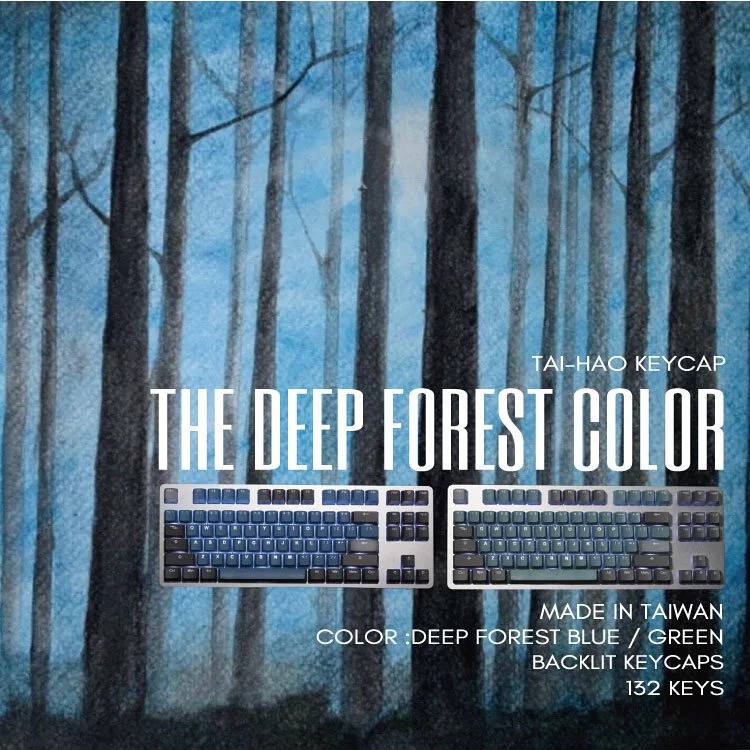 // Tai-Hao PBT Backlit 132 Keys Double Shot Keycaps Set - The Deep Forest Blue / The Deep Forest Green //