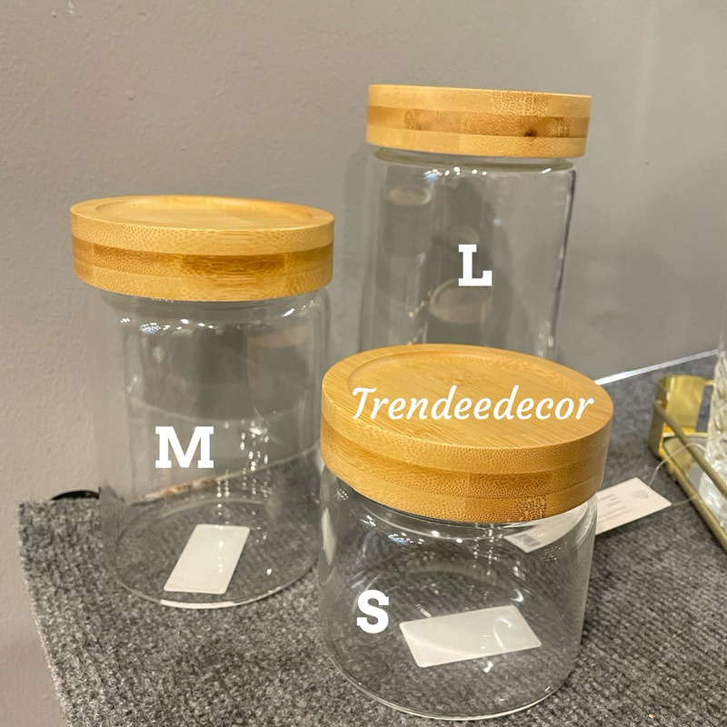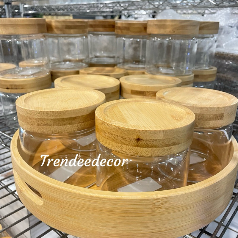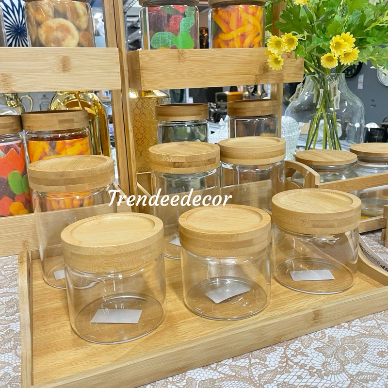 [Trendeedecor] Bamboo Lid Light Brown Glass Cookies Jar Balang Kuih Raya Penutup Buluh Kaca
