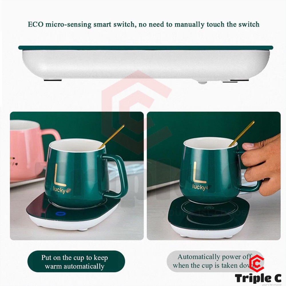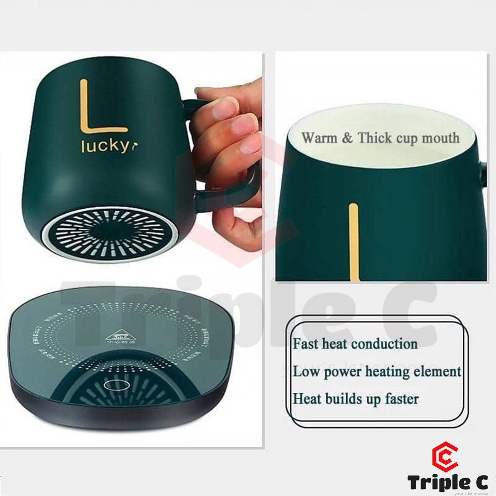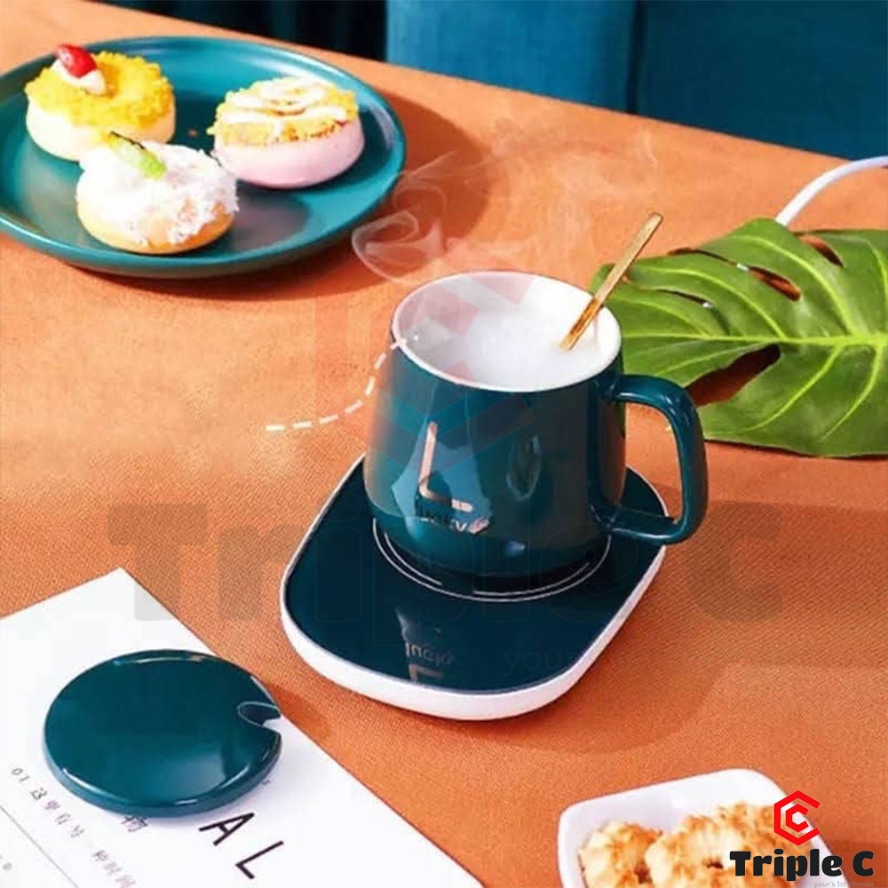 [Triple C] Pemanas Cawan Kopi USB Coffee Mug Warmer USB Pad With Stainless Steel Leaf Spoon and Cup