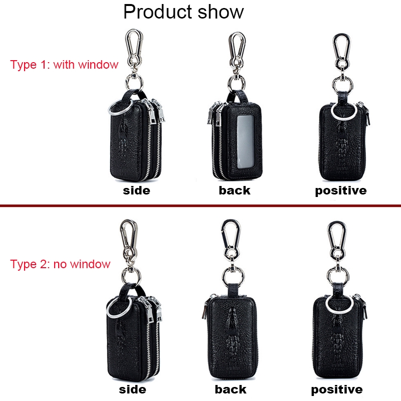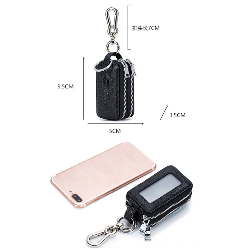 [UU] Car Key Holder Organizer Wallet Case Genuine Leather Car Keychain Bag Double Zipper