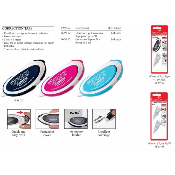 [Value Pack] Faber Castell Faber-Castell Glide Correction Tape 5mm x 6m 1 Body + 6 Refills