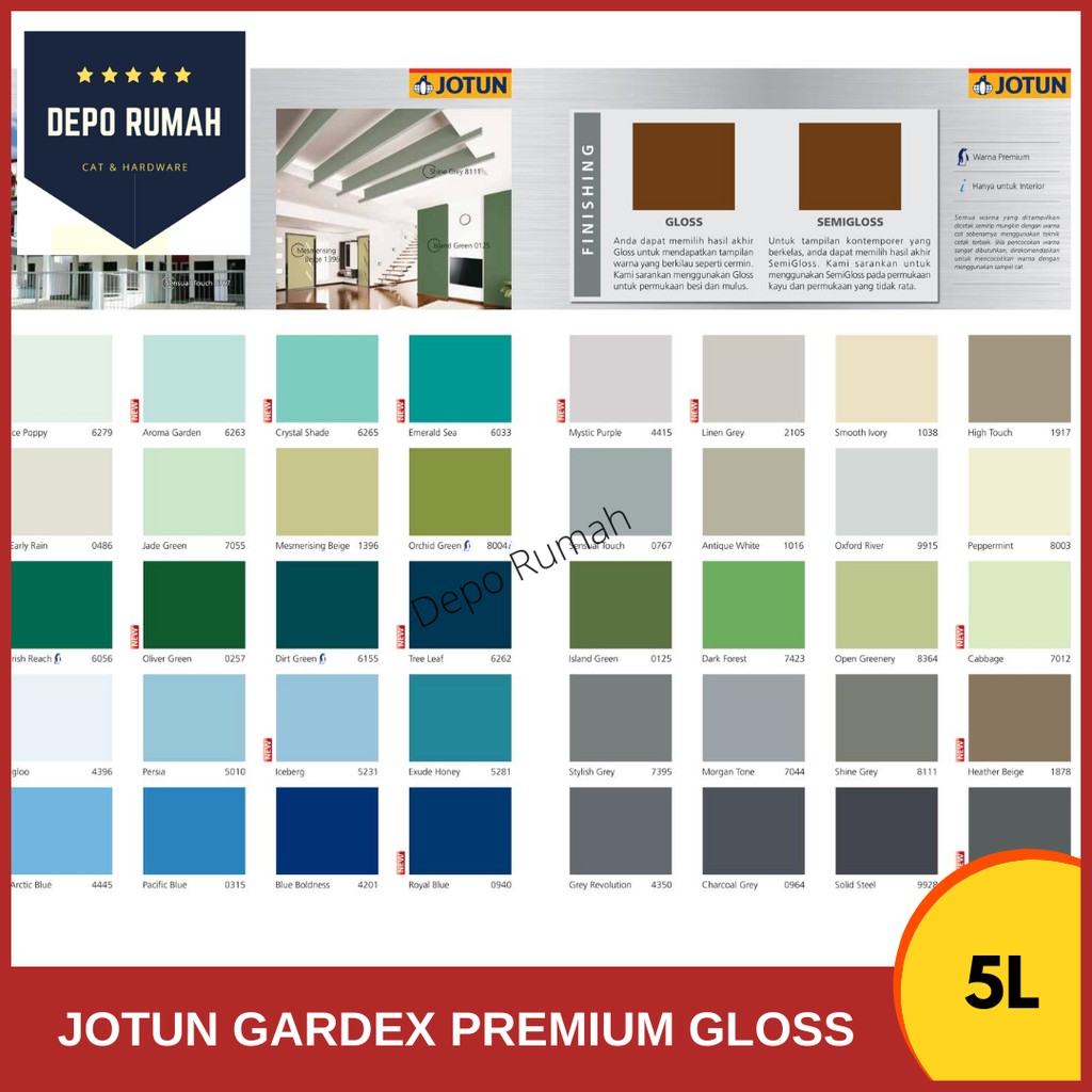 [WARNA] 5Litre Jotun Gardex Premium Gloss Paint 5L (Cat Besi & Kayu Jotun Putih&Warna)