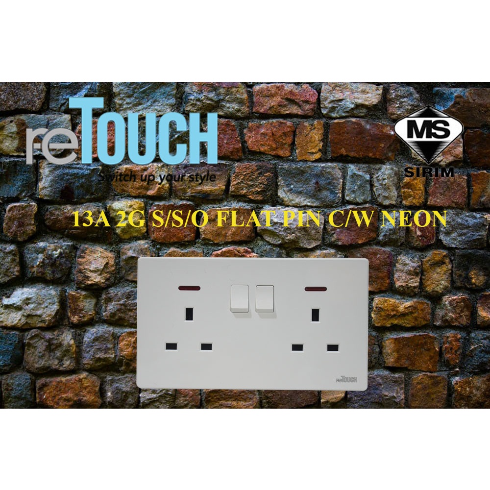 [WHITE] reTouch Switch Ultra Rimless 1/2/3/4 Gang 1/2Way Wall Switch 13A/15A Socket Waterproof Cover Frameless SIRIM