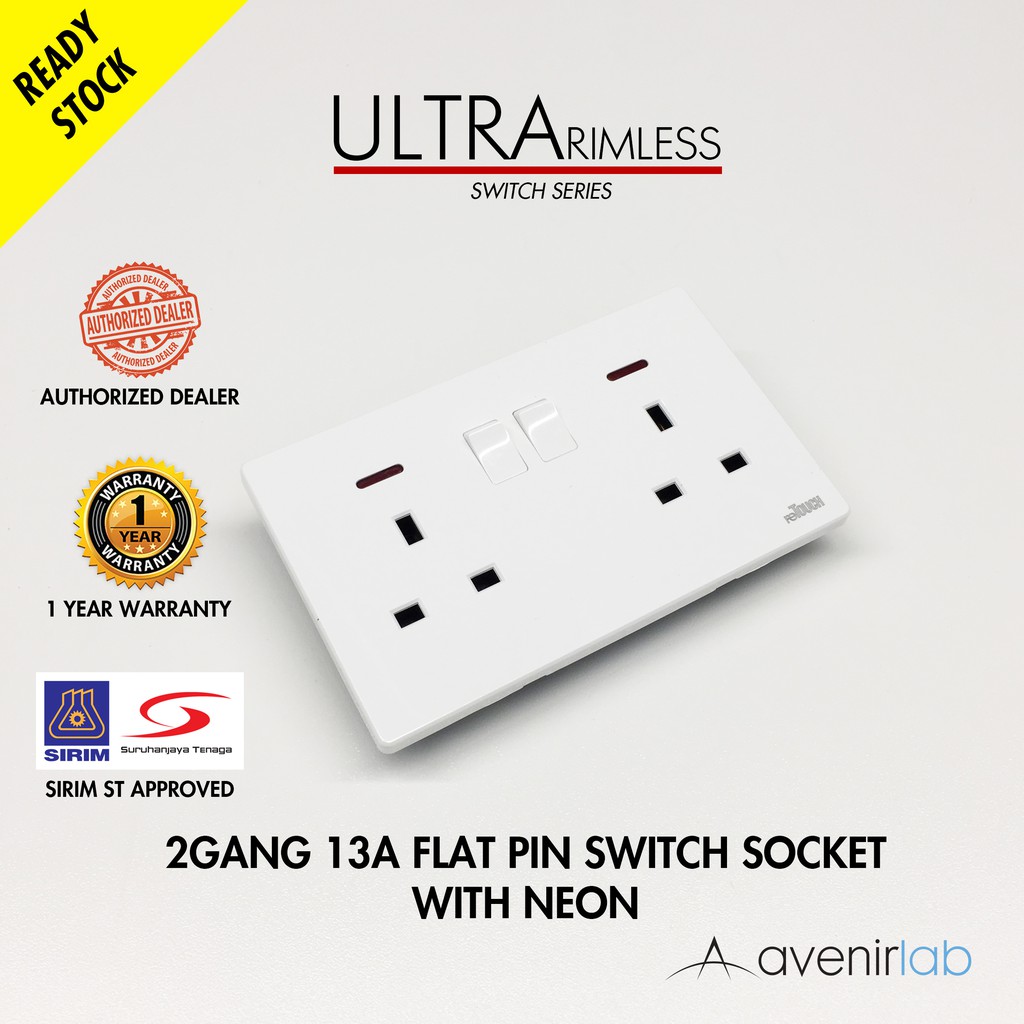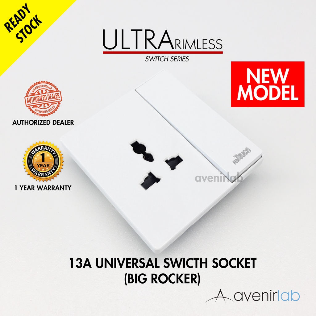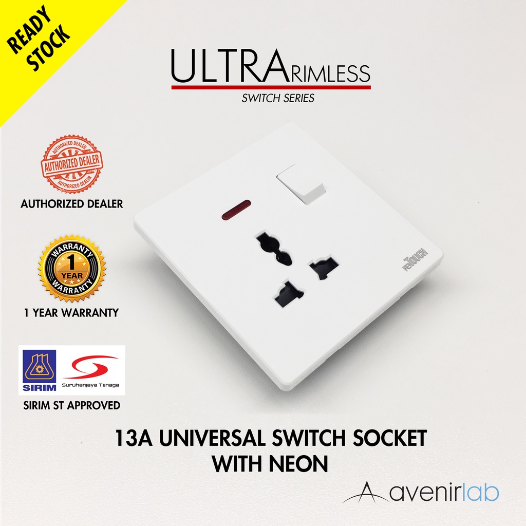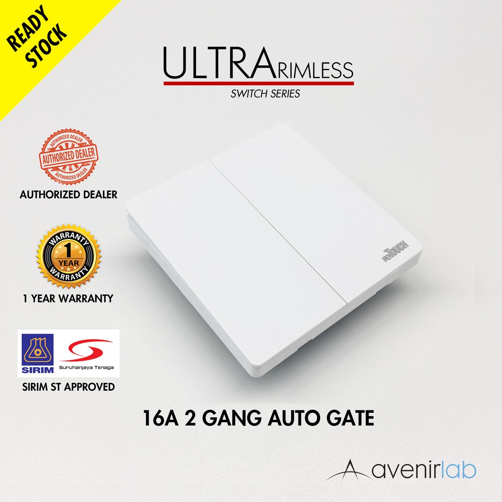 [WHITE] reTouch Ultra Rimless Switch 1/2/3/4 Gang 1/2Way Wall Switch 13A/15A Socket Waterproof Cover Frameless SIRIM