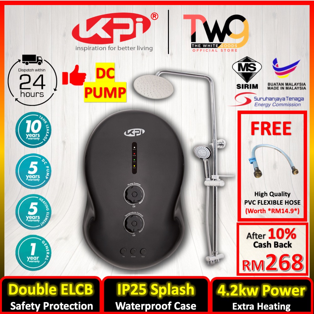 [WITH GIFT] KPI K2 Inverter DC Booster PUMP 4.2kw Instant Water Heater (BLACK)