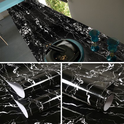 [ Wallpaper ] Black Marble Kitchen Cabinet Table Top Background Waterproof Wallpaper Sticker Warna Hitam Marble Sticker