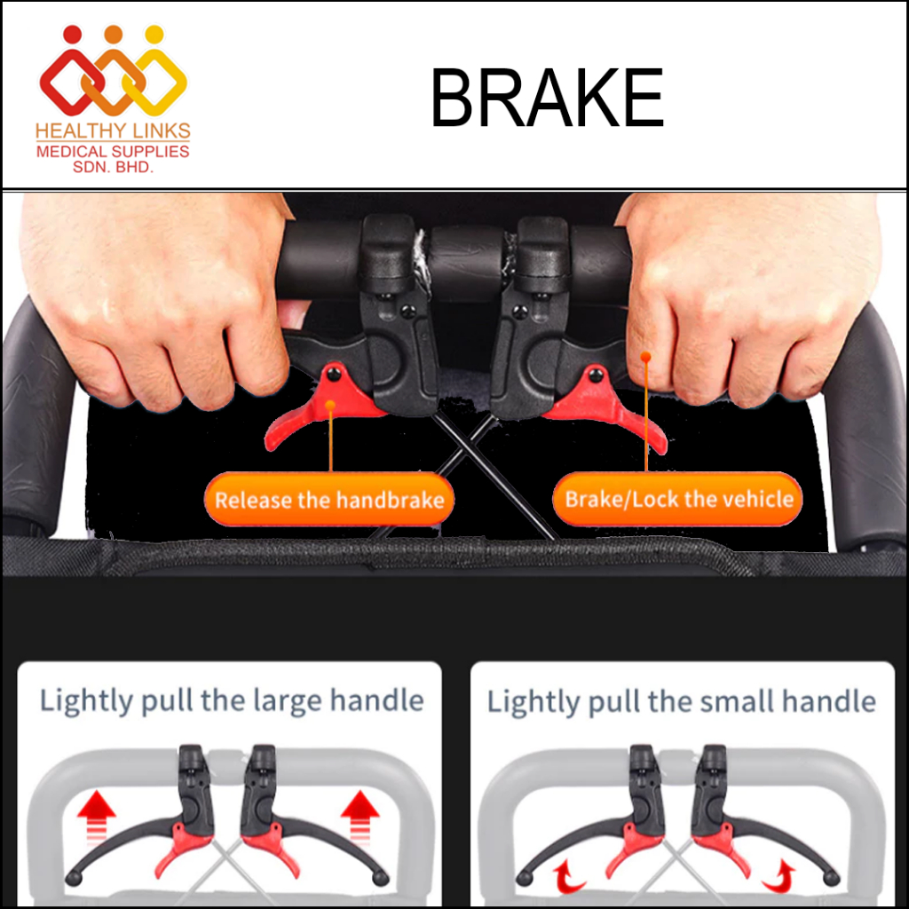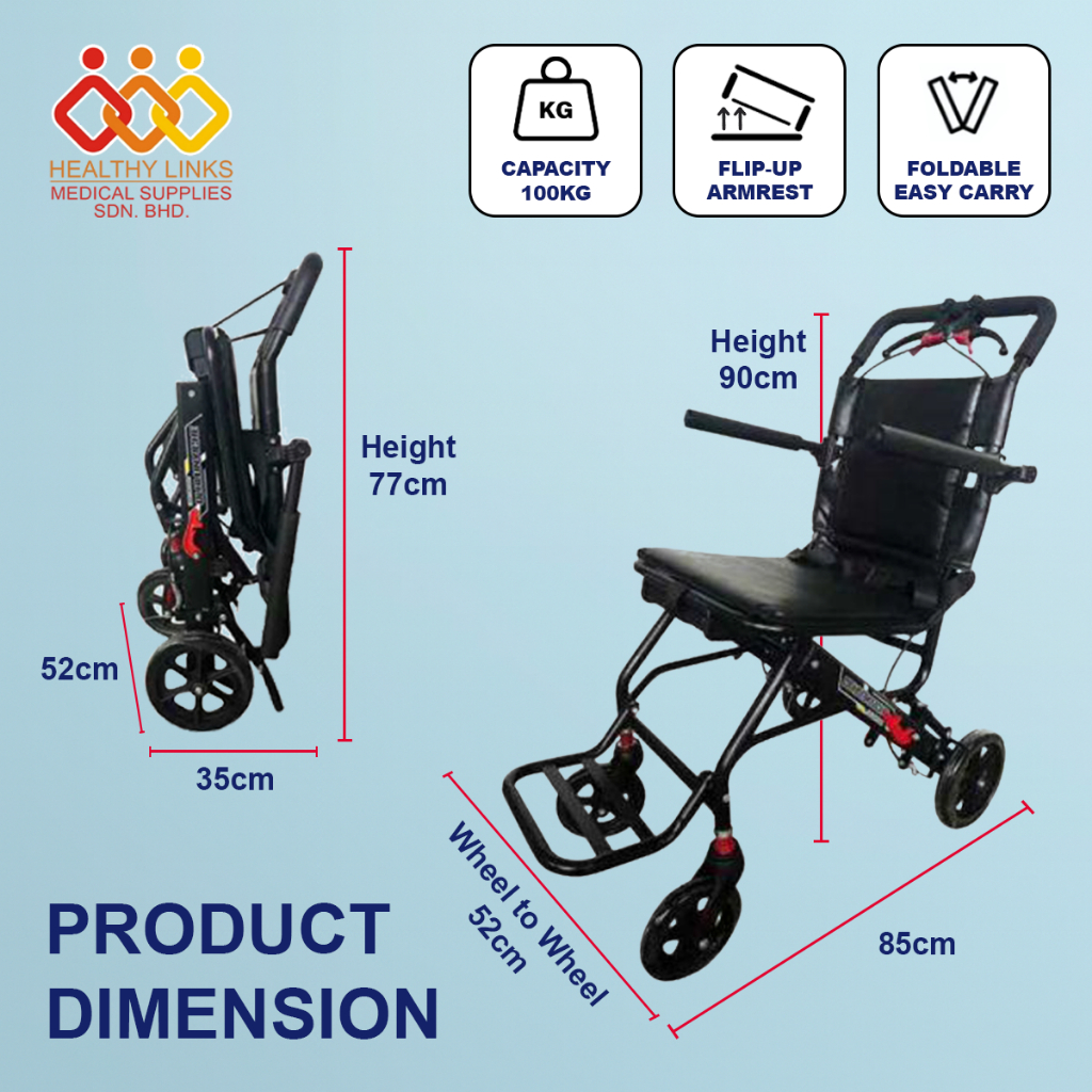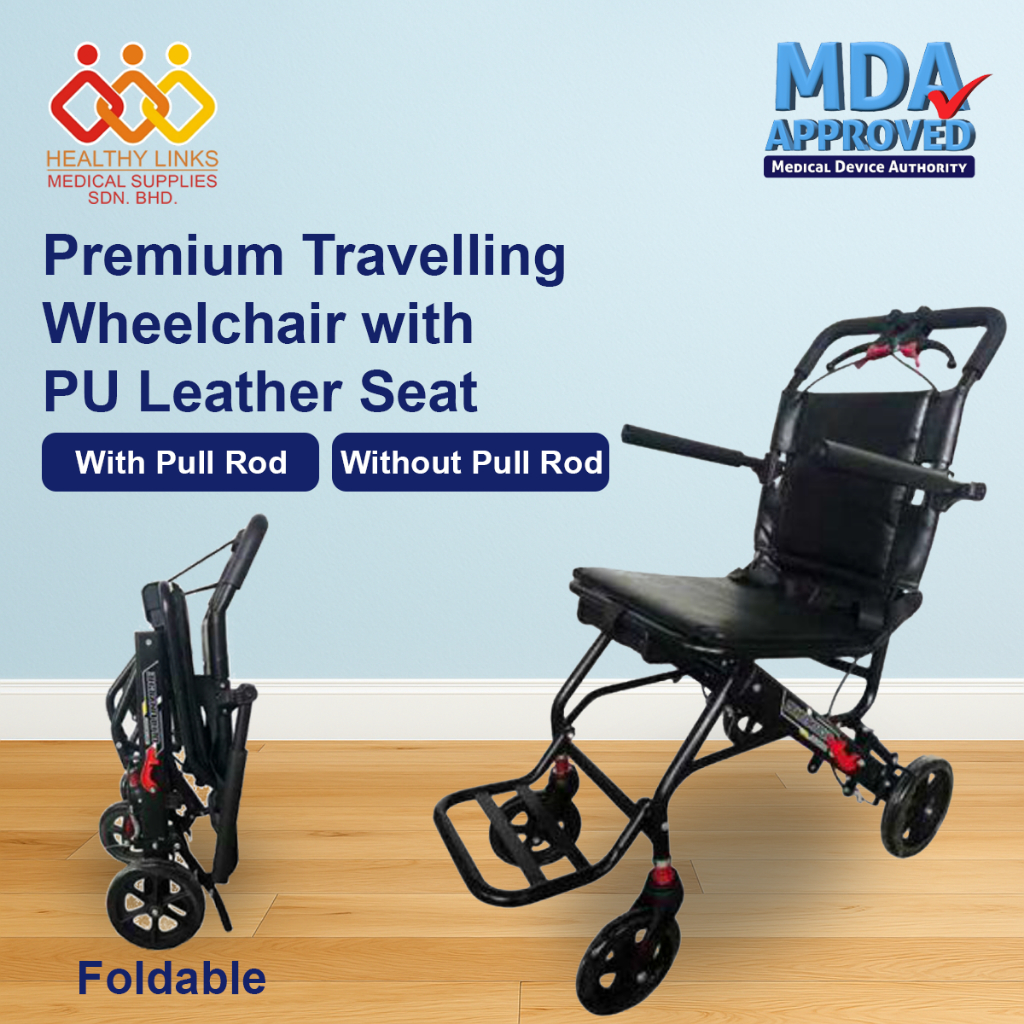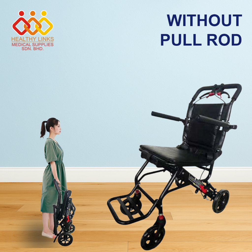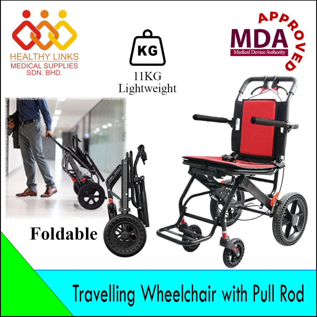 [With Pull Rod] Premium Foldable Lightweight Travelling Wheelchair 16 Inch Seat Kerusi Roda Ringan