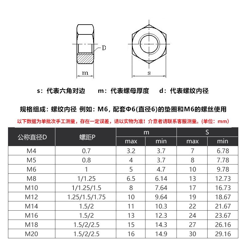 [XNY] 304 Stainless Steel Reverse Thread Hex Nut M4M5M6M8M10M12M20 Left Thread Reverse Thread Nut Left Screw Nut