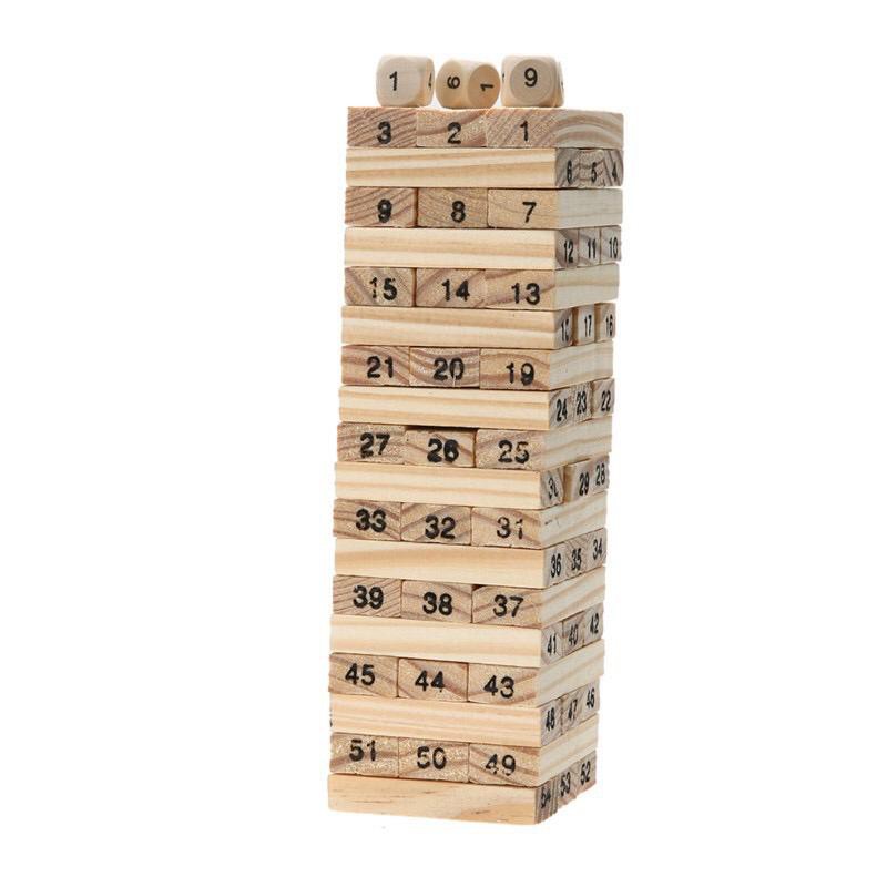 [YGH] Medium 54pcs Wooden Jenga Domino Blocks Building Game Wood Stacker Building