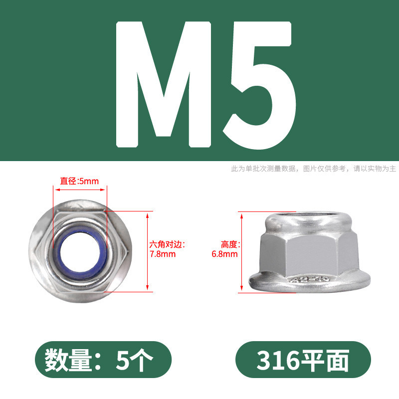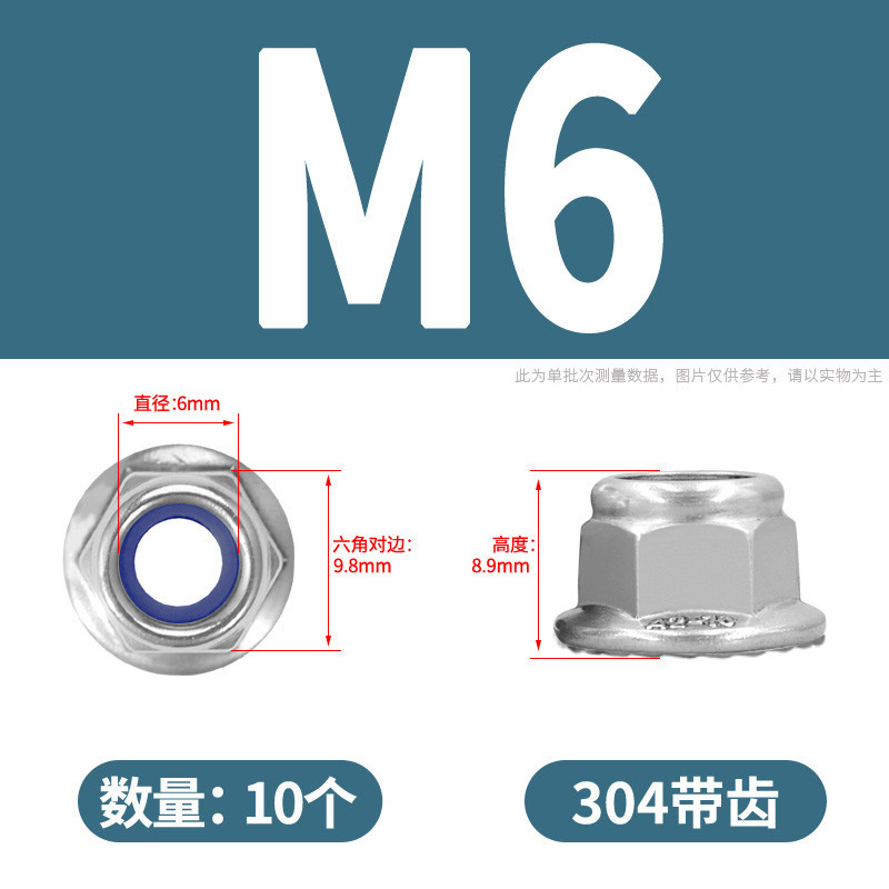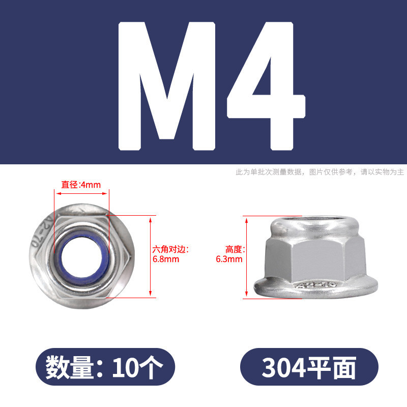 [YMH] 304 Stainless Steel with Pad Flannel Nylon Loose-Proof Nut Hexagonal Anti-Slip Nut M3M4M5M6M8M10M12 Self-Lock