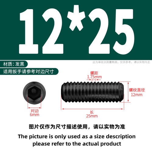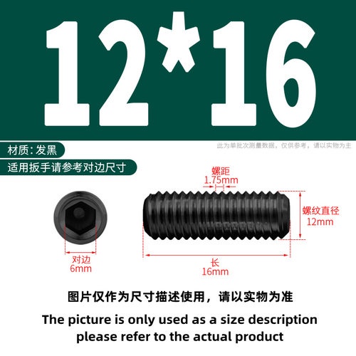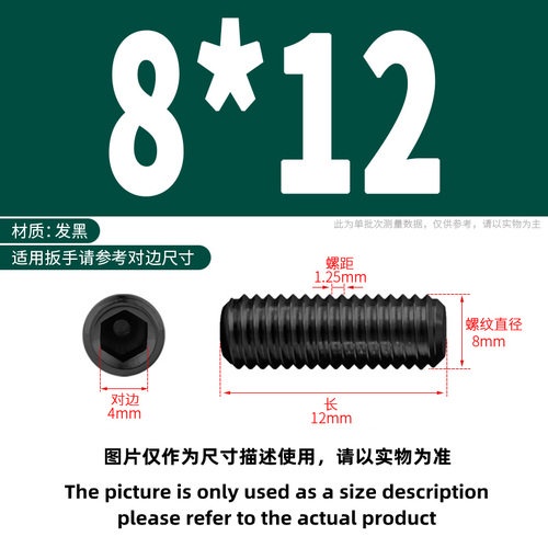 [YMH] Fixed Screw Grade 12.9 Black Concave Machine Meter Screw Hexagon Socket Headless Screw Headless Stop Screw M8/M10/M12