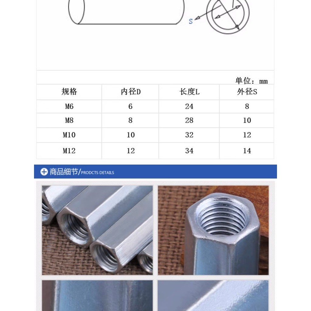 [YMH] Galvanized Extended Cylindrical Joint Nut Hex Nut Screw Rod Connection Screw Cap M4-M24