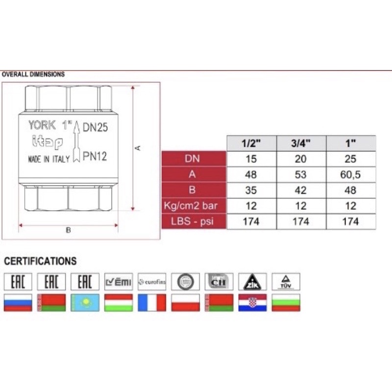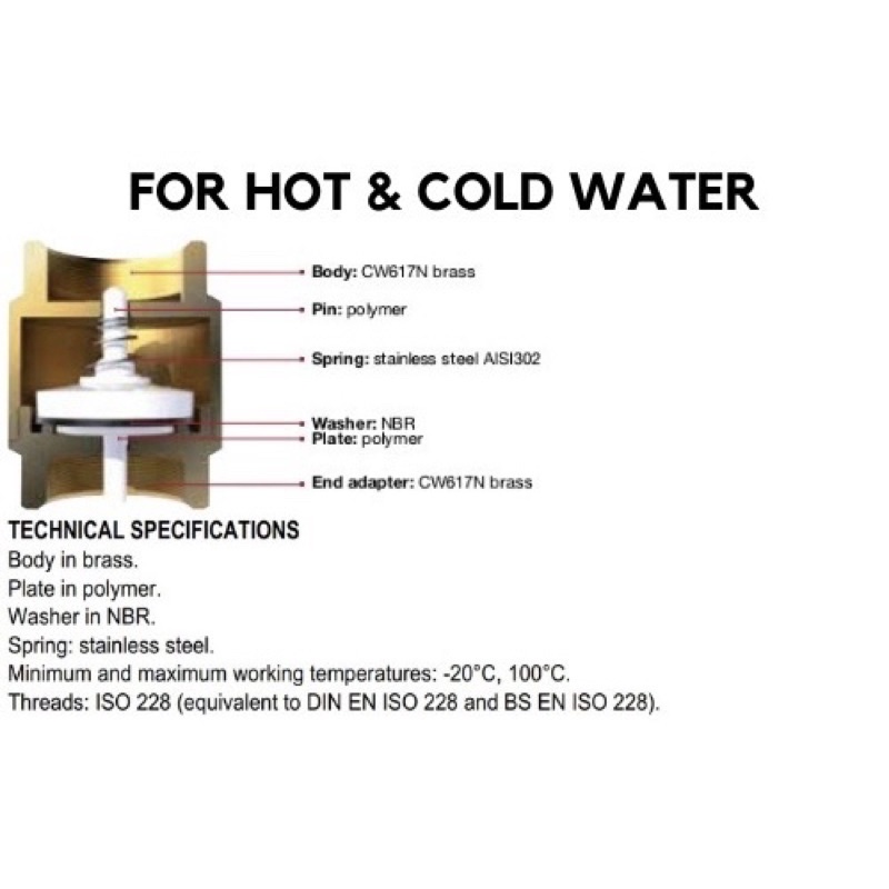 "YORK" Heavy Duty Vertical Spring Check Valve 1/2"(15mm), 3/4"(20mm), 1"(25mm)