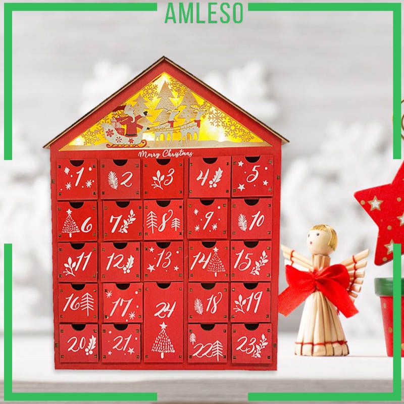 [amlesoMY] Christmas Red Wooden Advent Calendar 24 Drawers Beautiful
