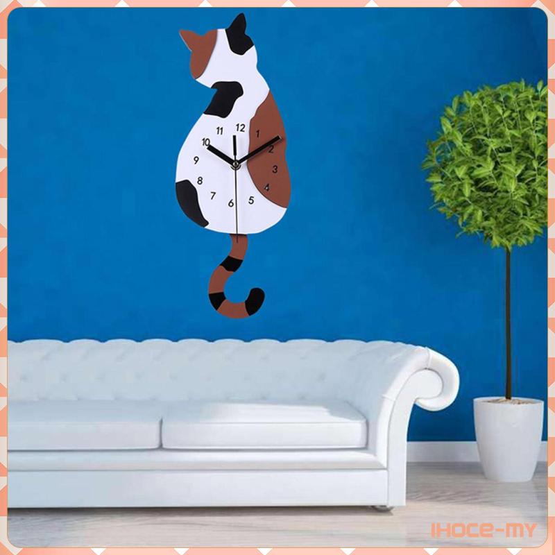 [ihoceMY] Modern Design Silent Clock Tail Wagging Pendulum Clocks Battery Operated for Living Room Bedroom Decorative
