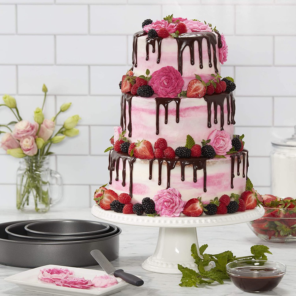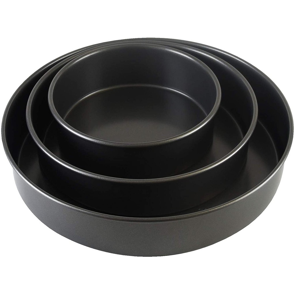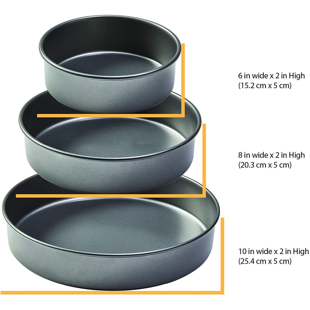 [ iiMONO ] Chicago Metallic Professional Non-Stick 3-Piece Round Cake Pan Bakeware Set, Black