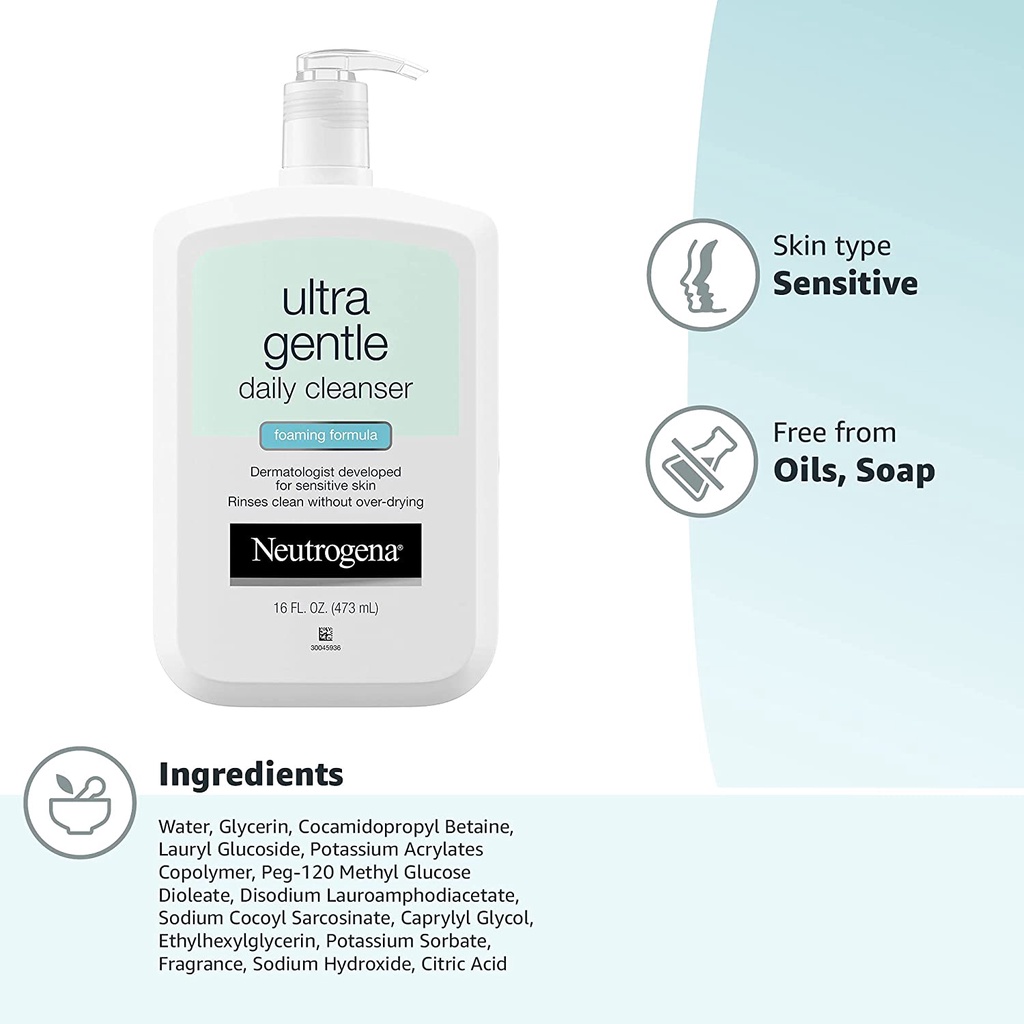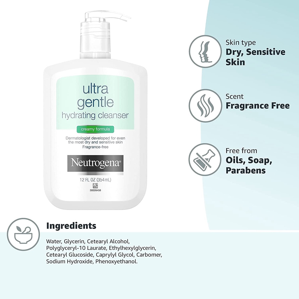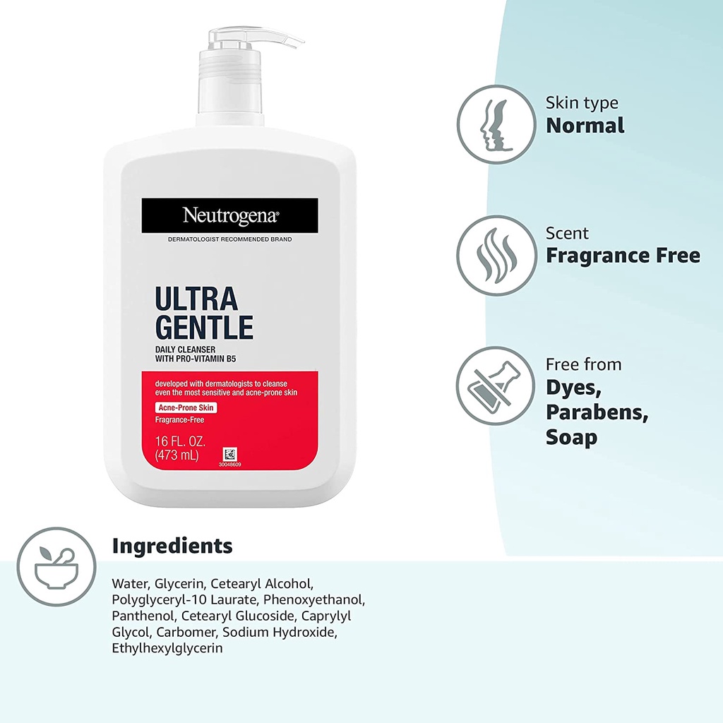 Neutrogena Ultra Gentle Hydrating Daily Facial Cleanser Creamy Foaming Formula | Pro-Vitamin B5 Acne Prone