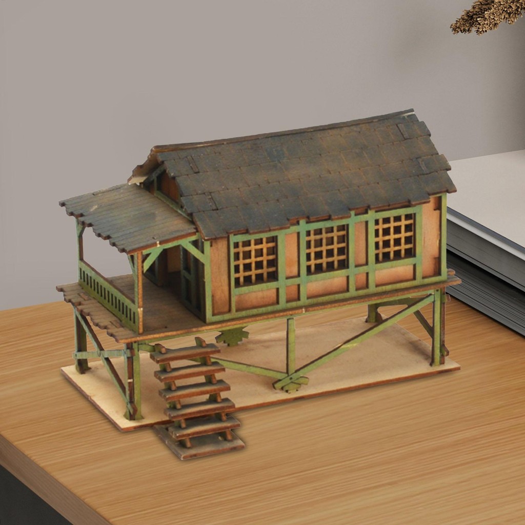 [xbnmpzi] DIY Wooden House, 1/72 Scale Model House Assembly, Wooden Model House Kits, DIY Scene Layout, Micro Landscapes, Decor