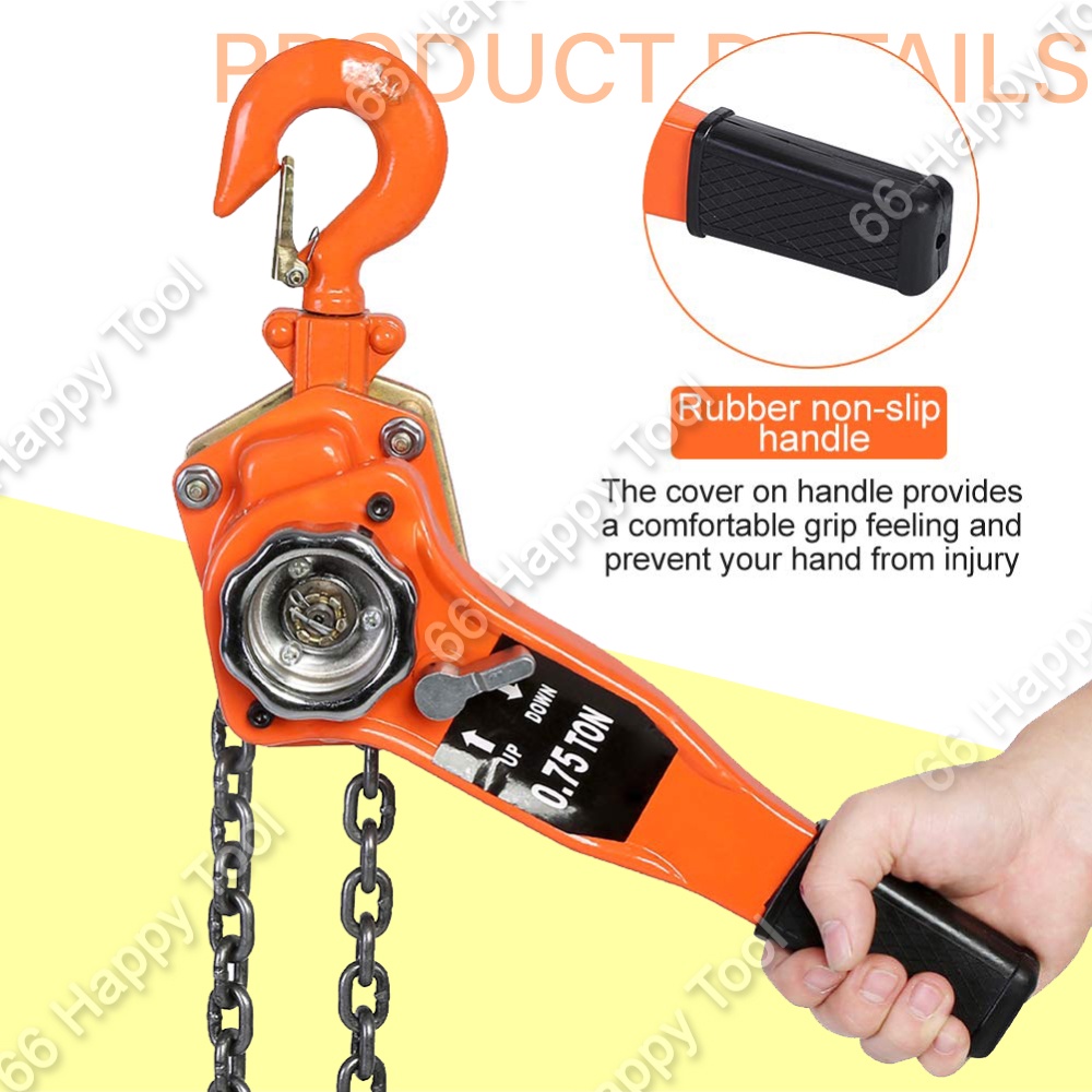 0.75 / 1.5Ton Lever Block Chain Hoist 1.5m/3meter Hand Operated Lift Construct Block Hoist Heavy Duty Blok Rantai Ikat