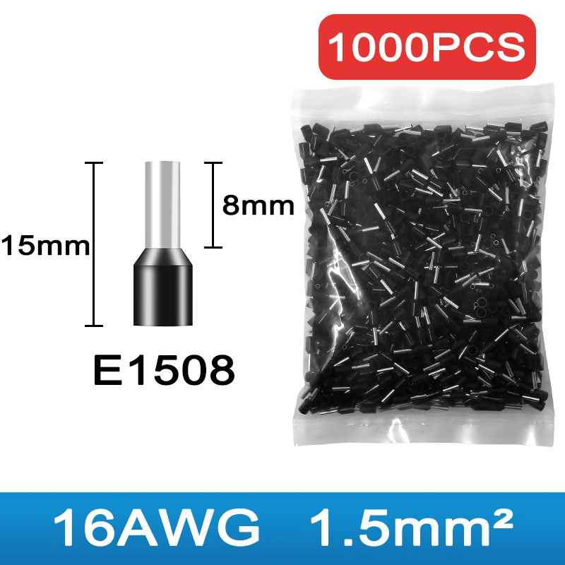 1,000pcs E0508 E7508 E1008 E1508 E2508 E4009 E6012 Needle Tube Type Pre-Insulation Connector Wire Crimping Connector Cable Kit Terminal