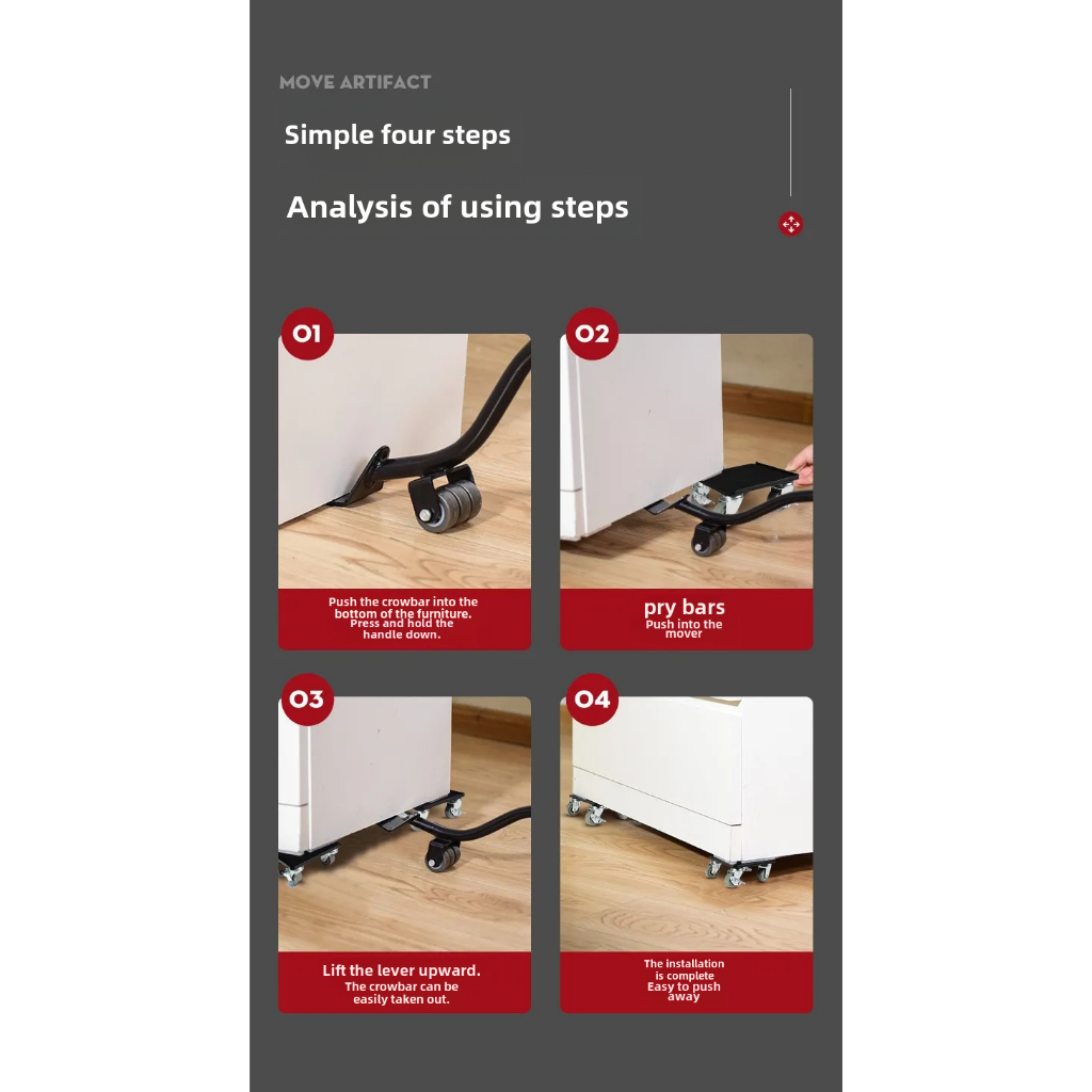 1,100kg Capacity Heavy Duty Furniture Movers Furniture Lifter Jack Move Furniture Piano Vending Machine Dolly