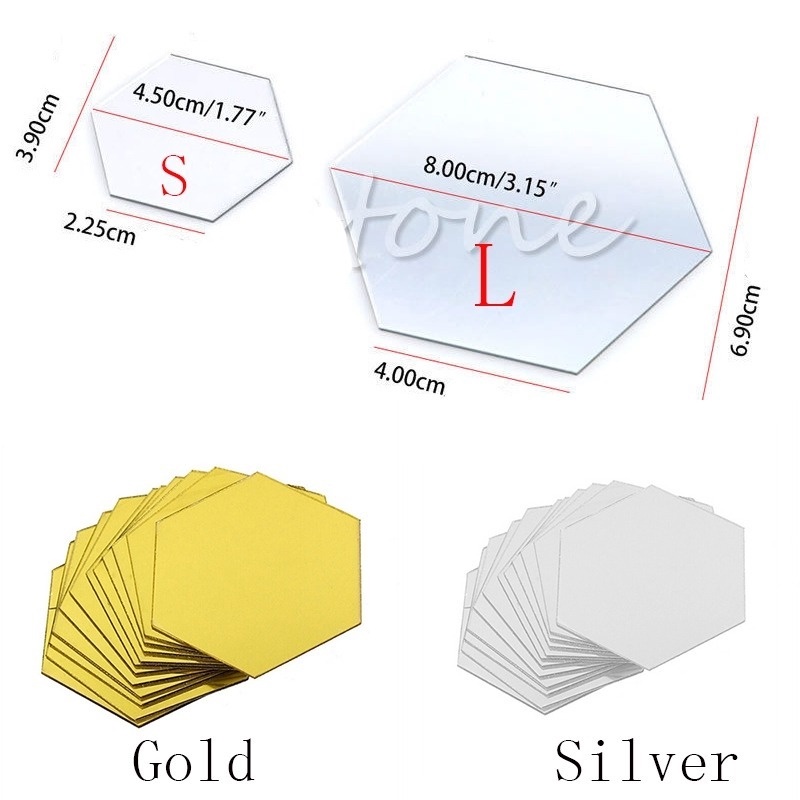 1/12 Pcs Acrylic Hexagon Mirror Wall Decals/ DIY Removable Decorative Tile Mirror Stickers/ Romantic Wall Art Mural
