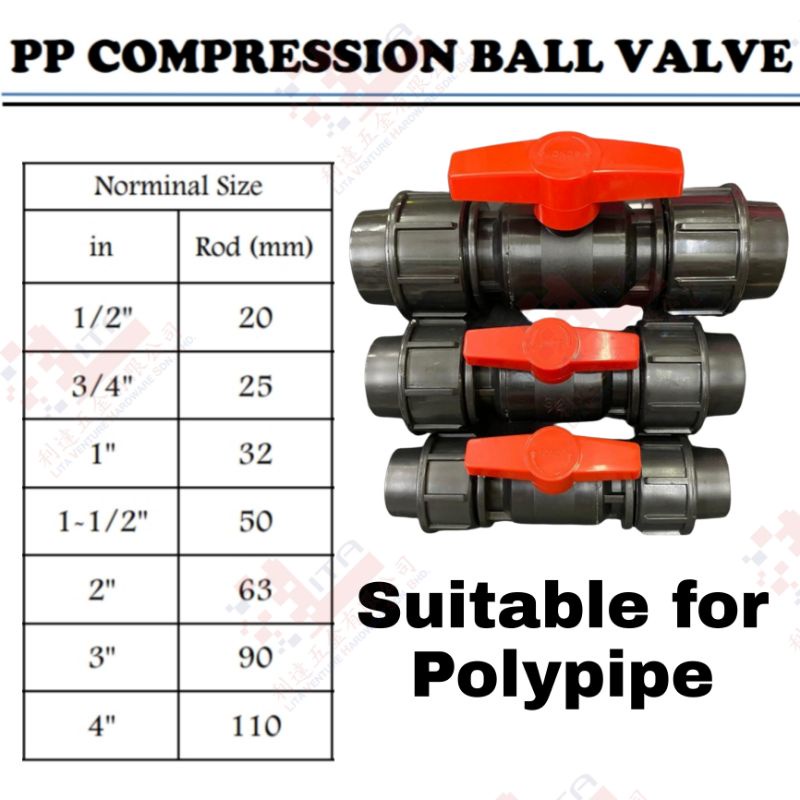 1/2" 3/4" 1" 1-1/2" PP COMPRESSOR BALL VALVE POLY PIPE BALL VALVE DIRECT PIPE JOINT FOR POLYPIPE