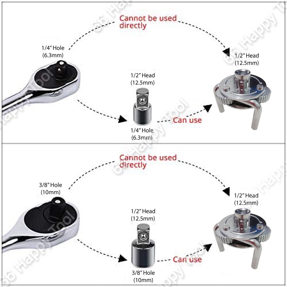 1/2" Drive Adjustable 60-120mm 3 Jaw Two Way Oil Filter Removal Wrench Remover Auto Tool Automotive Removing CR-V Round
