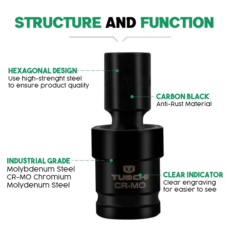 1/2 INCH FLEXIBLE IMPACT BOX HEX SOCKET IMPACT WRENCH ADAPTER 8MM TO 22MM HEX SOCKET SIZE AUTOMOTIVE TOOL CR-MO
