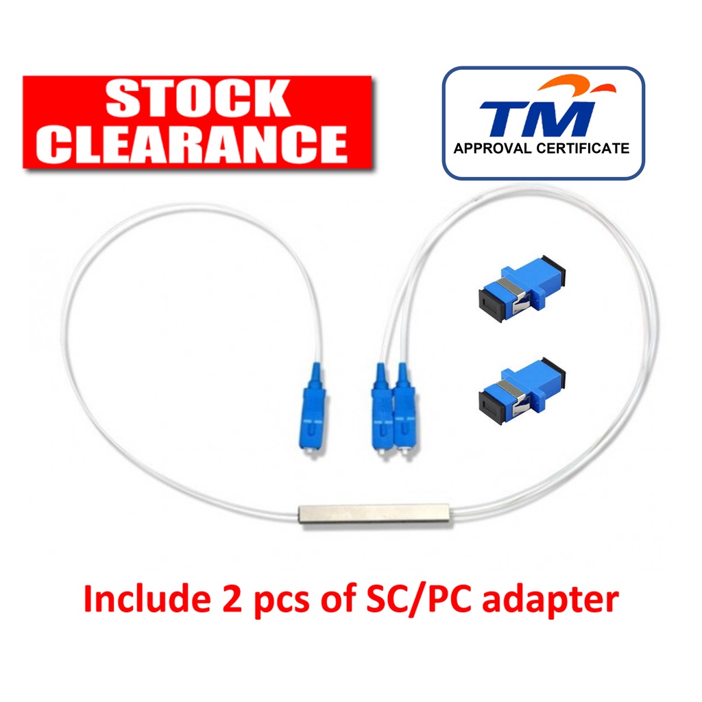 1:2 PLC splitter (Planar Waveguide Circuit) suitable for Unifi installation FTTX FTTH (Free Gift - 2 SC/UPC adapter)