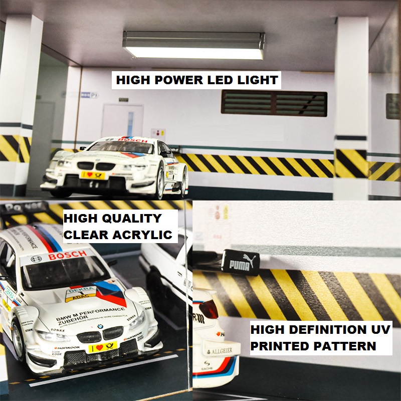 1:32 1:24 1:18 Model Diecast Toy Car Replica Display Box Casing Parking Lot Garage Diorama with Acrylic and LED light