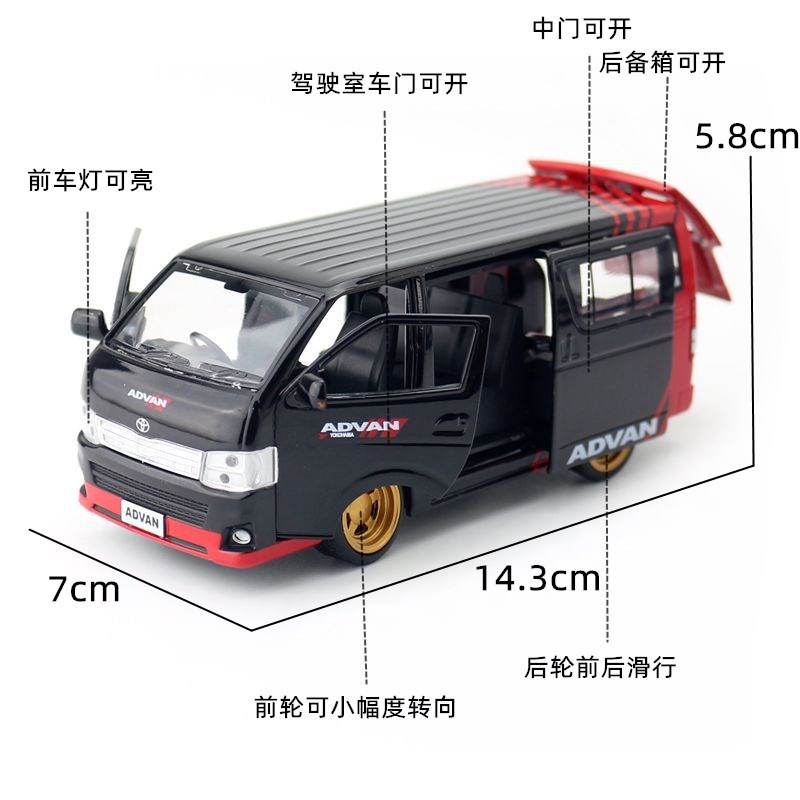 1/32 Alloy Diecast Model Vehicle Car Toyota Hiace(H200) Model Toy Pull Back with Light Sound