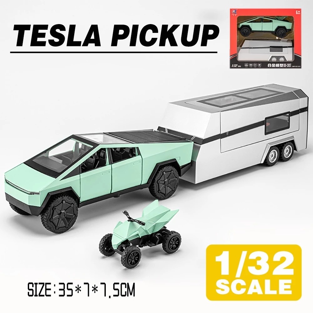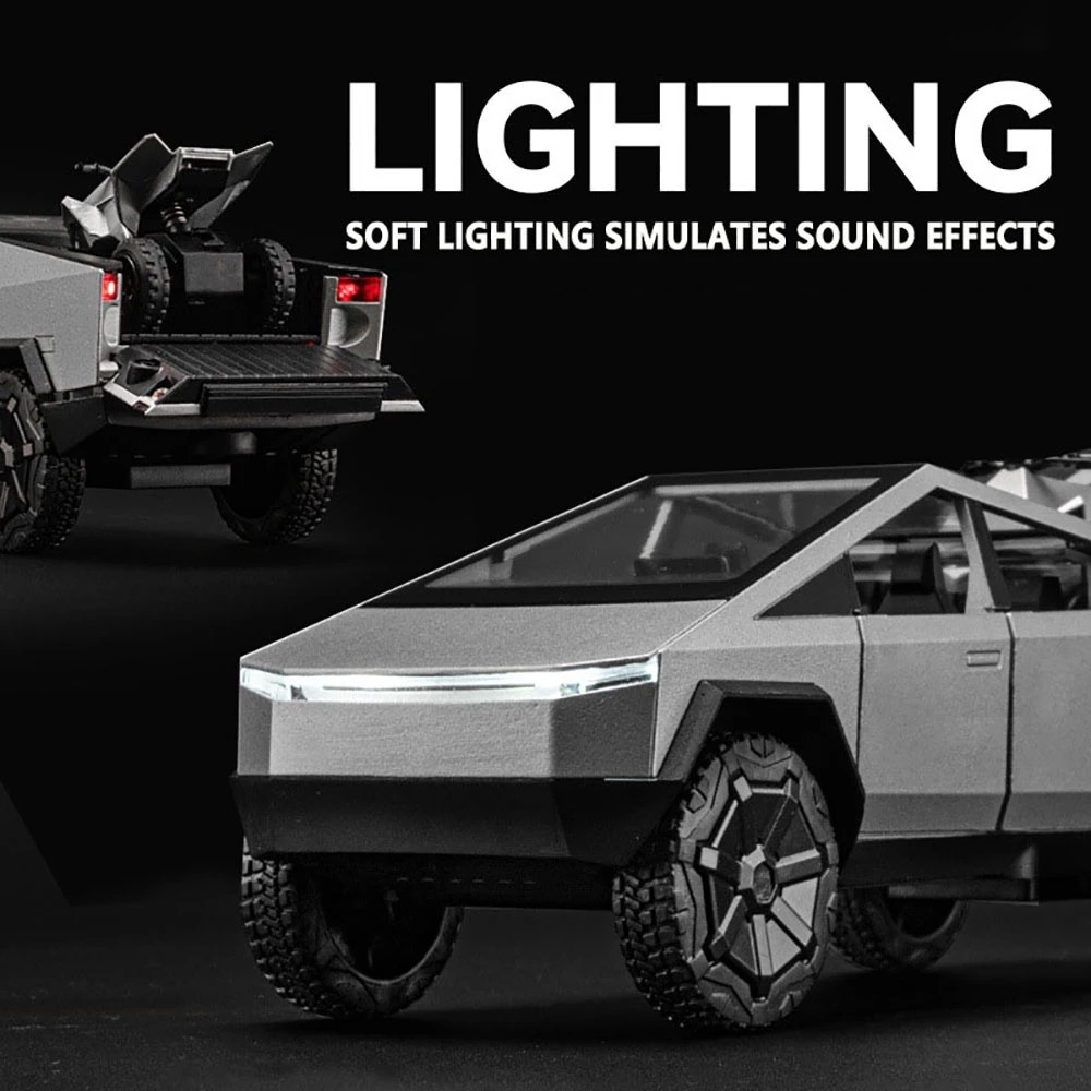1:32 Scale Tesla Cybertruck Pickup Truck 4X4 Alloy Car Model Diecast Car Sound Light Car Collection Kids Gift Metal Toy