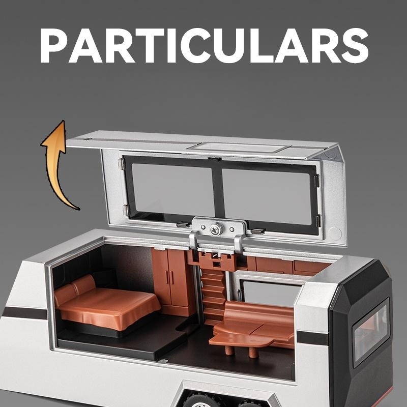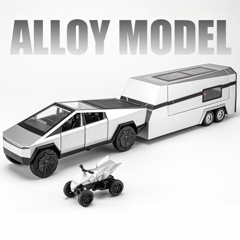 1/32 Tesla Cybertruck With Touring Car RV Caravan Diecast Toy Metal Miniature Model Pull Back Sound Light Collection