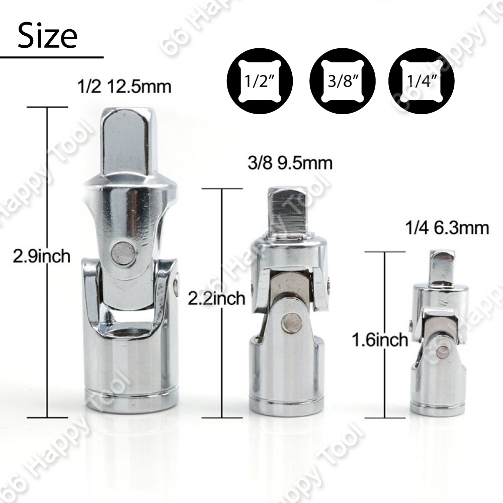 1/4" 1/2" 3/8" Inch Universal Joint Bar Socket Adapter Flexible Ratchet Angle Extension Rotation Adaptor Hand Tool CR-V