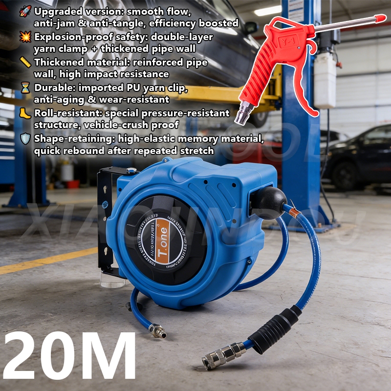 1/4" 180° Swivel Wall Mount Air Hose Reel Retractable Auto Rewind 66FT Max 300 PSI Workshop Pneumatic Tool Air Hose Reel Compressor 20M Wall Mount With Auto Rewind