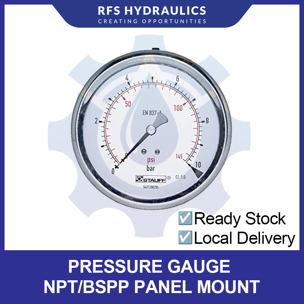 1/4" BSPP/NPT 63MM Panel Mount Dry STAUFF Pressure Gauge with 2 1/2" Dial Face and Stainless Steel SS316 Case