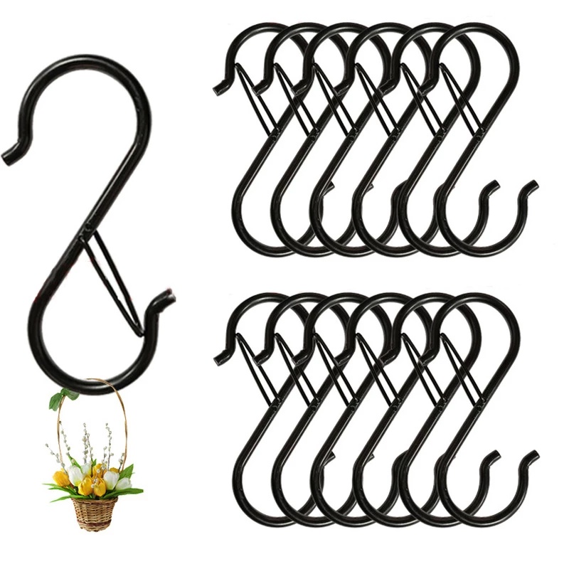 1/5/10Pcs S Shaped Hook with Windproof Buckle Durable Multifunctional Home Organizer Hanger Safety Buckle Design Hook Multifunctional Heavy Duty Premium Metal Garden Storage Tool